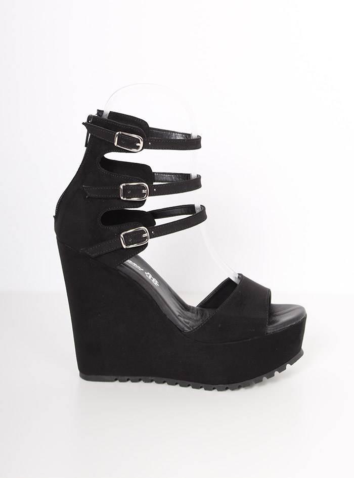 Μαύρη καστόρινη πλατφόρμα υψηλής ποιότητας με τρεις μπαρέτες δέσιμο στον αστράγαλο.
