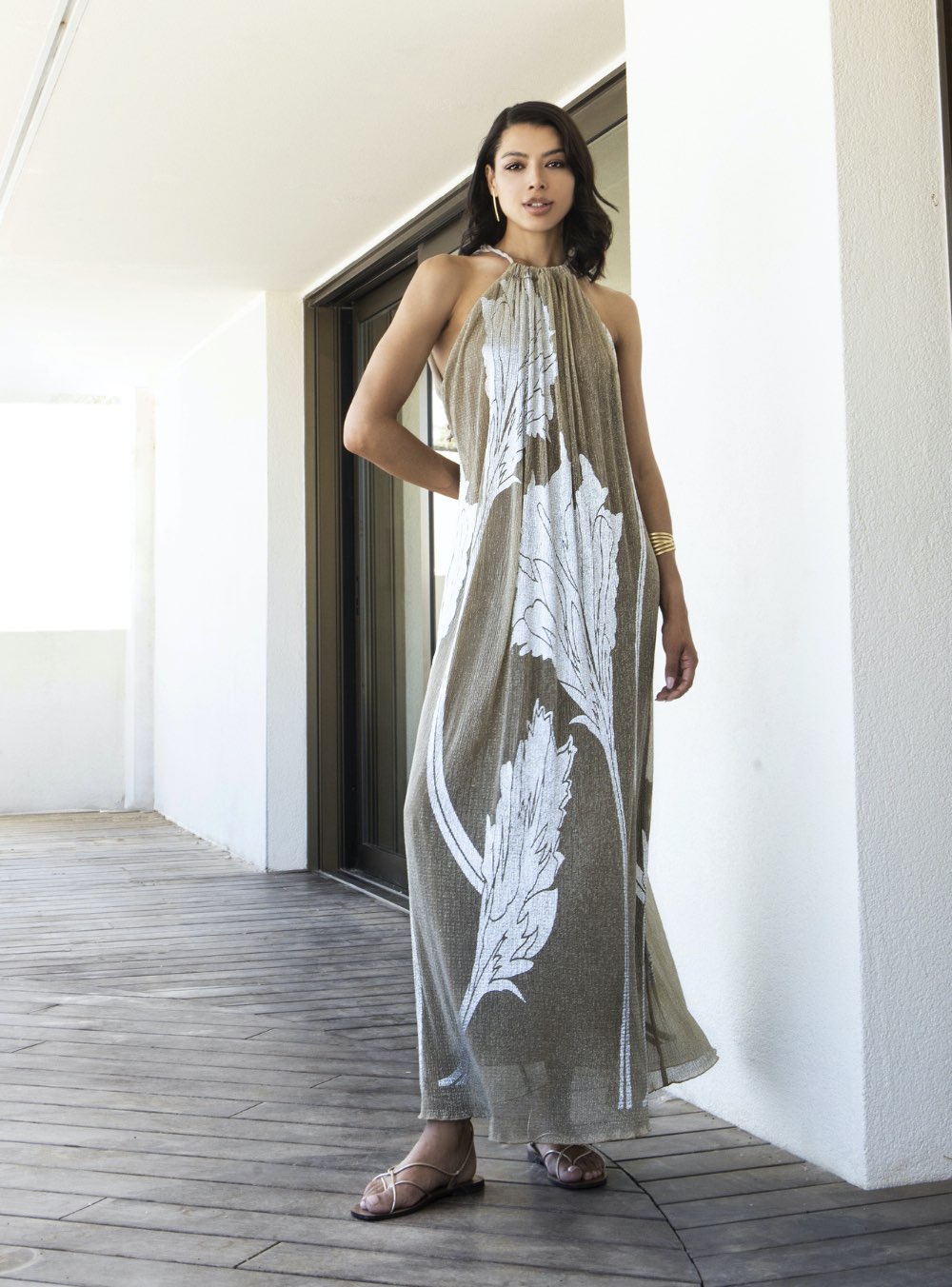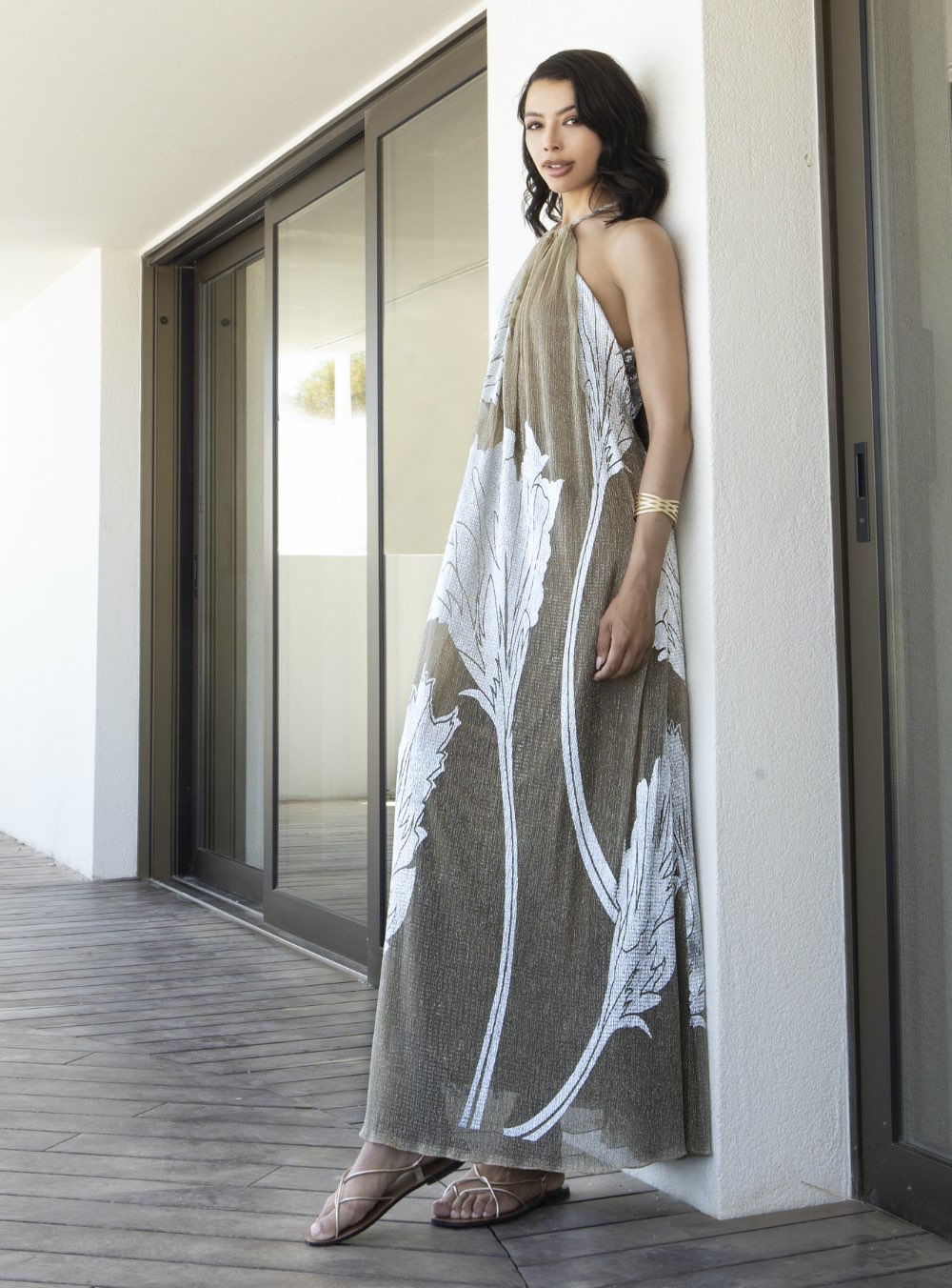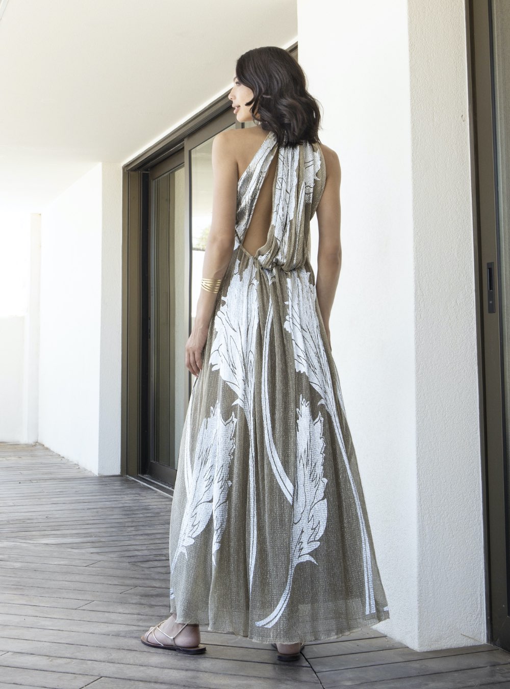 Maxi Φόρεμα που δένει στο λαιμό με σχοινί και διαθέτει τέλεια λοξά ανοίγματα(back cut out) στην πλάτη AGGEL KNITWEAR.