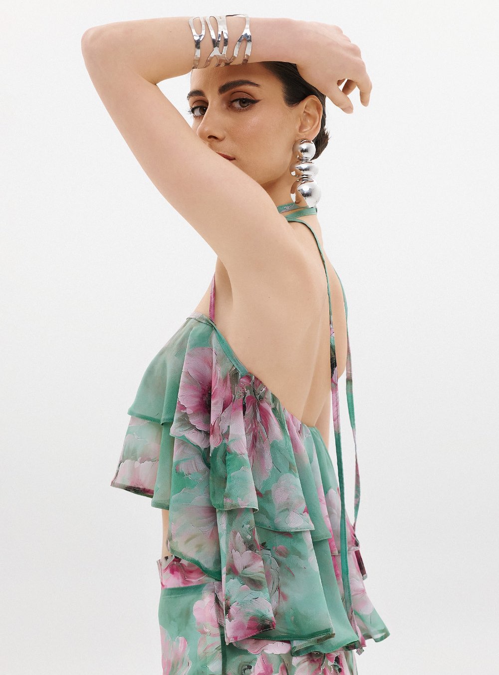 Γυναικείο top κατασκευασμένο από λεπτό ύφασμα σιφόν με διαφανές φινίρισμα ANNA SAMOUKA THEA TOP. Λεπτομέρειες με βολάν για εφέ όγκου Δέσιμο στο λαιμό με λεπτές τιράντες Cropped Ελαφρύ, λεπτό ύφασμα Ελαστική λεπτομέρεια στην πλάτη για σταθερή εφαρμογή Τύπωμα με την υπογραφή της Άννας Σαμούκα Κατασκευασμένο στην Ελλάδα