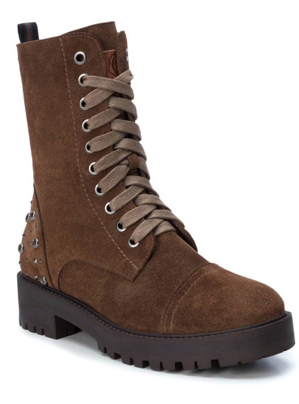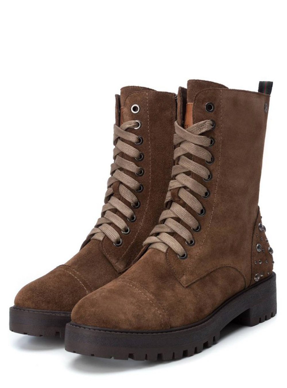 Γυναικεία Camel δερμάτινα suede αρβυλάκια με τρουκς και πλαϊνό φερμουάρ Carmela Shoes.