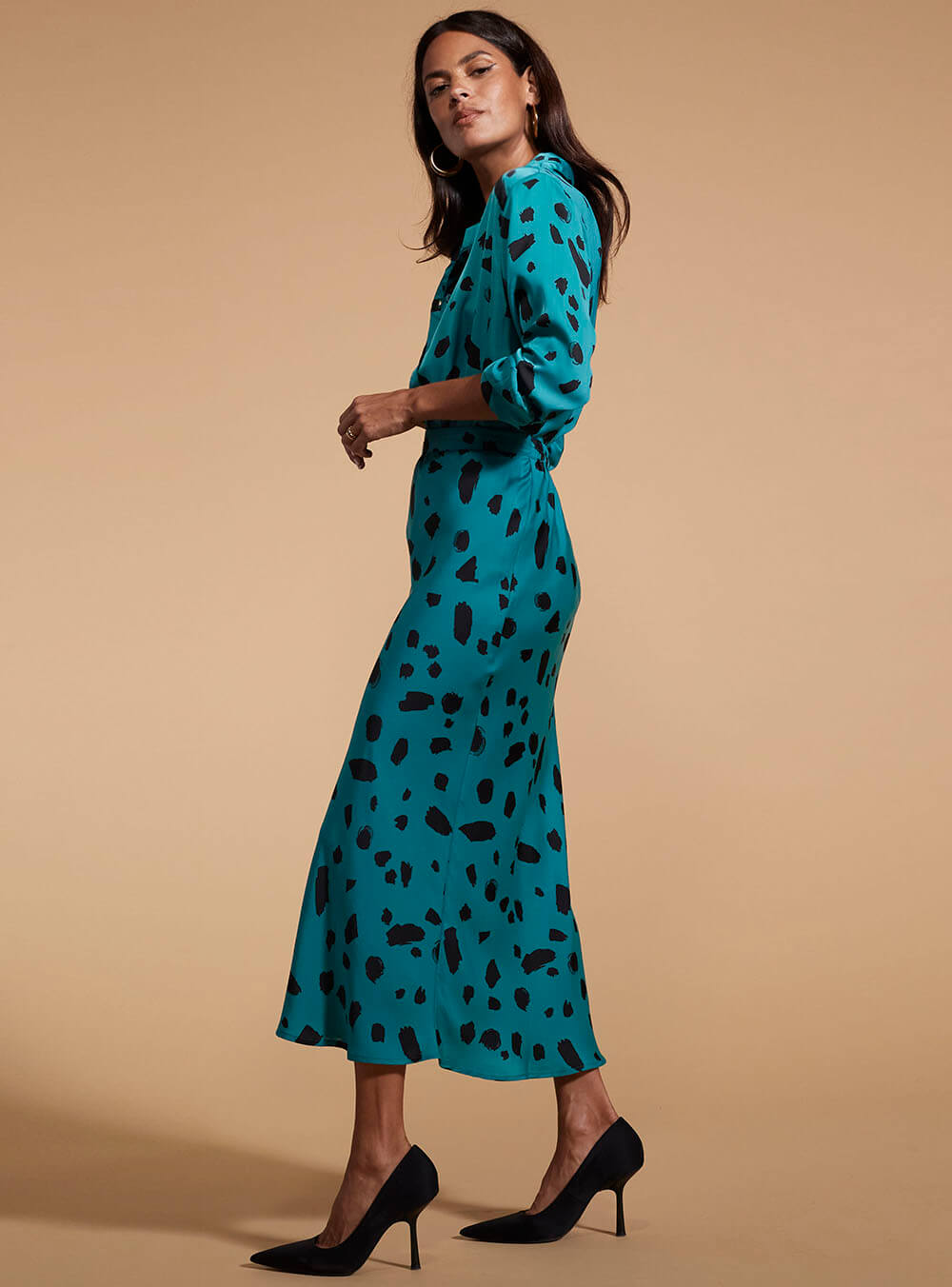 με υπέροχο print DANCING LEOPARD RENZO SKIRT ABSTRACT DOT ON TEAL.