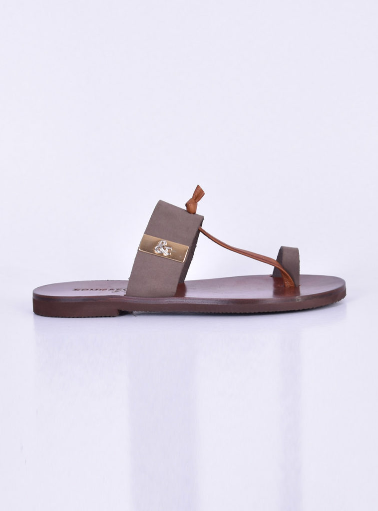 Δερμάτινα Φλατ Σανδάλια Γκρι Komis&Komis