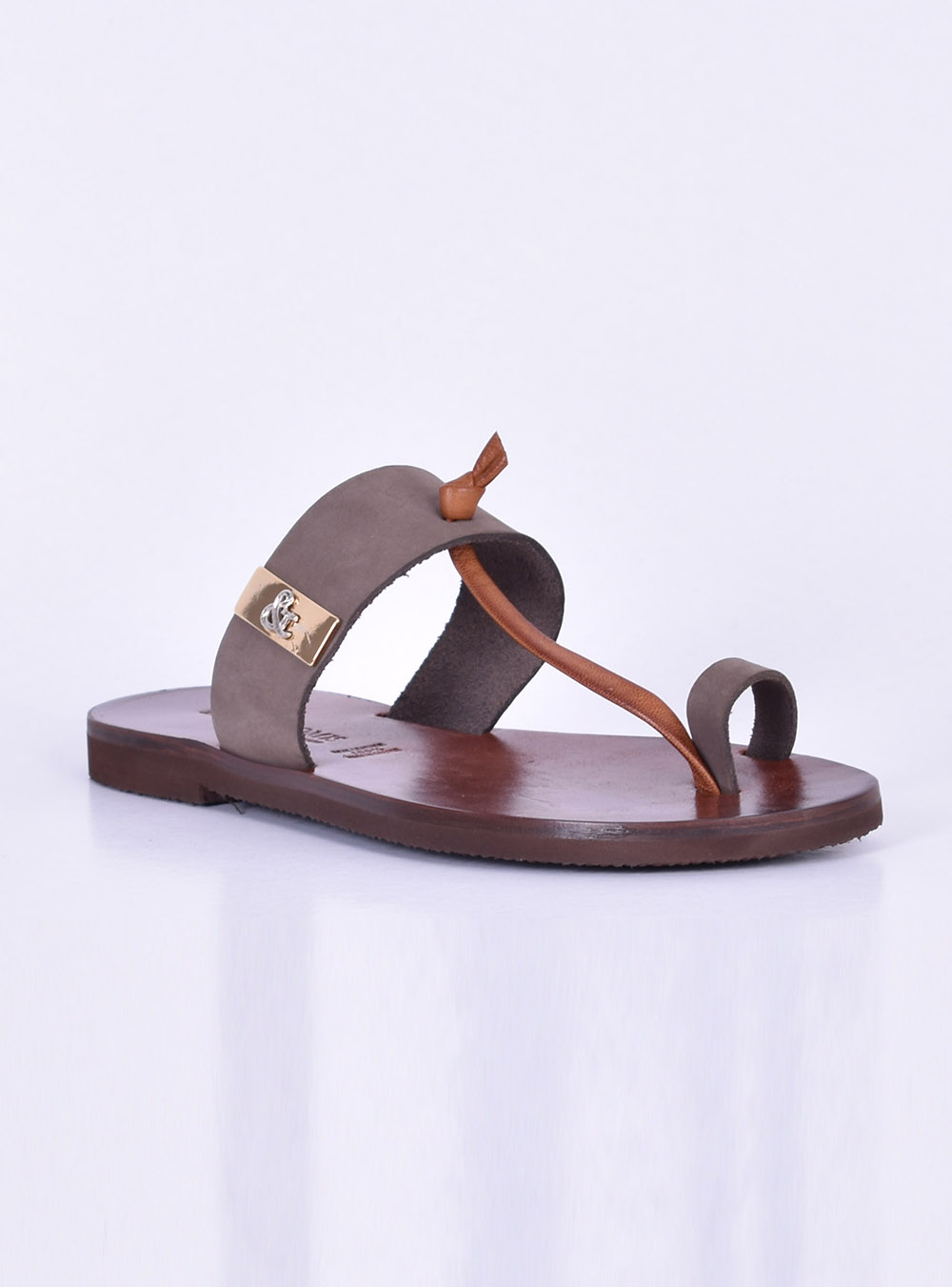 Δερμάτινα Φλατ Σανδάλια Γκρι Komis&Komis