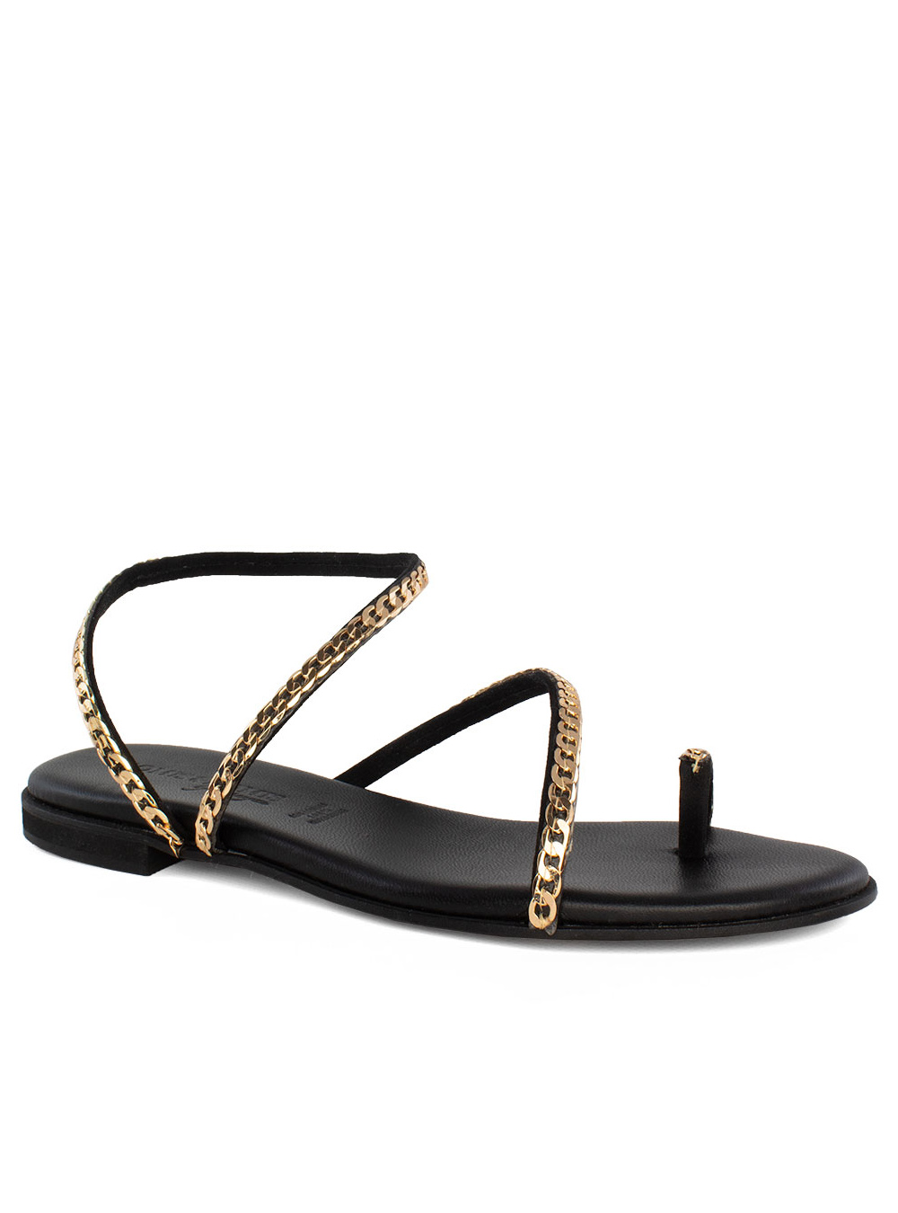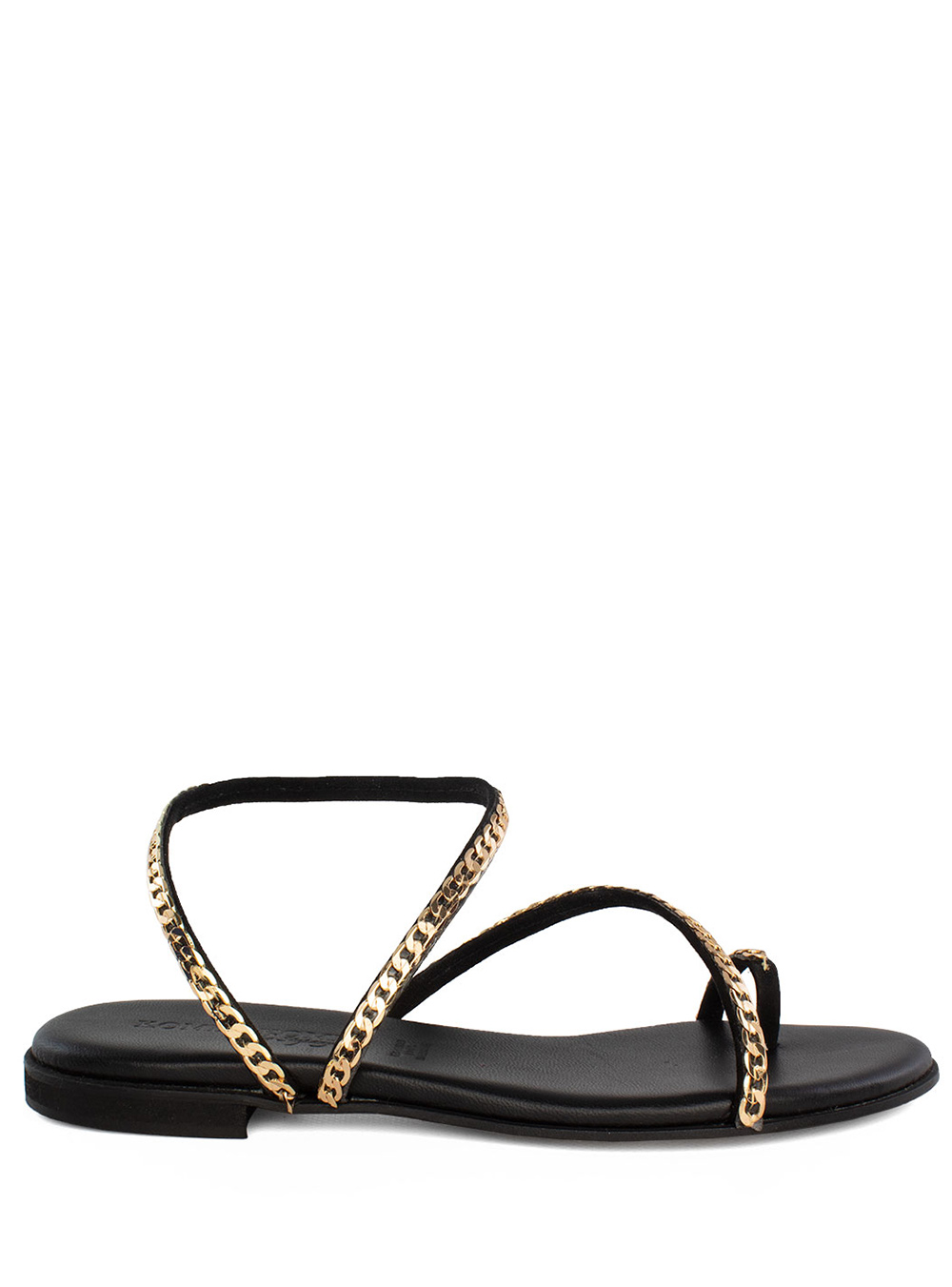 Δερμάτινα Μαύρα Σανδάλια με αλυσίδα κKOMIS&KOMIS
