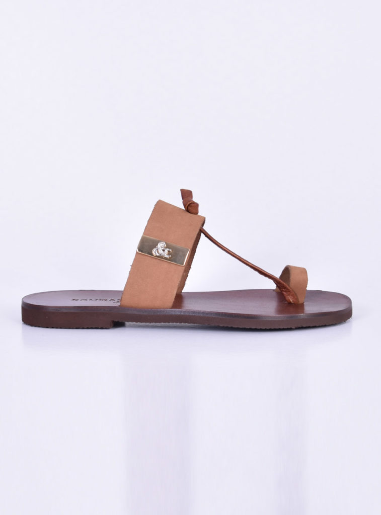 Δερμάτινα Φλατ Σανδάλια TAN Komis&Komis