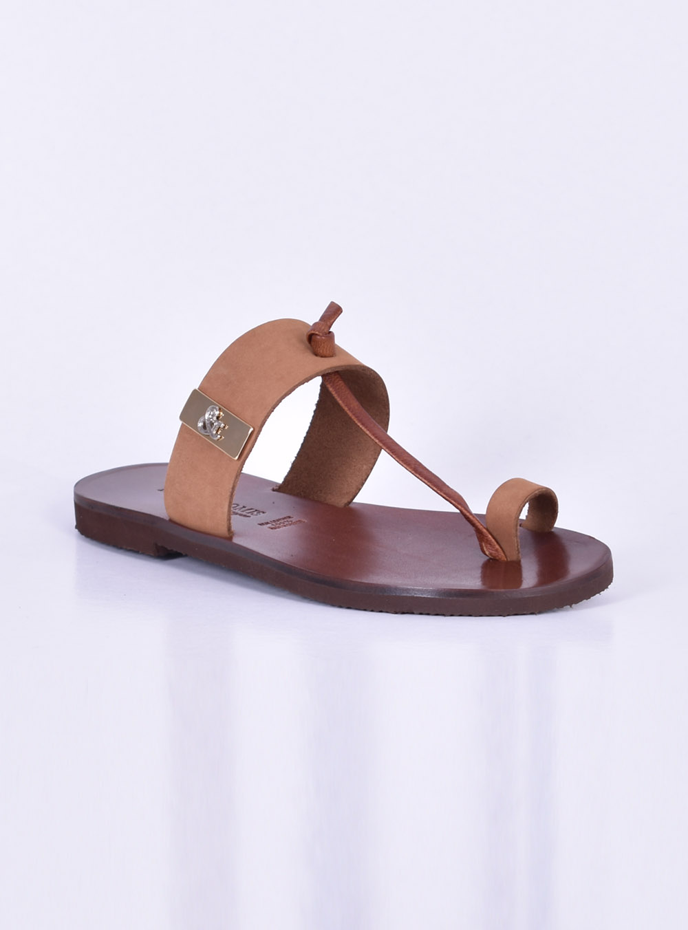 Δερμάτινα Φλατ Σανδάλια TAN Komis&Komis