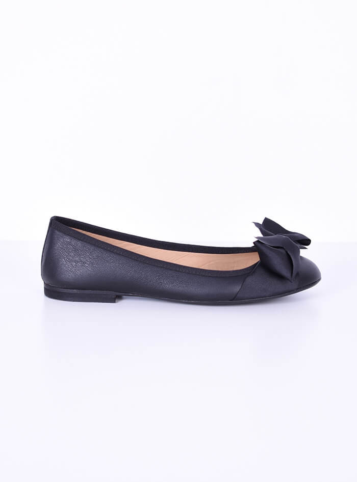 Δερμάτινη Μαύρη Μπαλαρίνα Με Φιόγκο