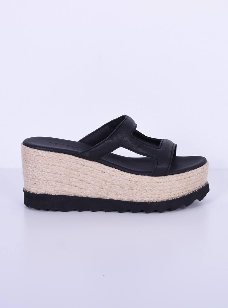 Εξαιρετικής ποιότητας μαύρη δερμάτινη πλατφόρμα με ιδιαίτερο σχέδιο,