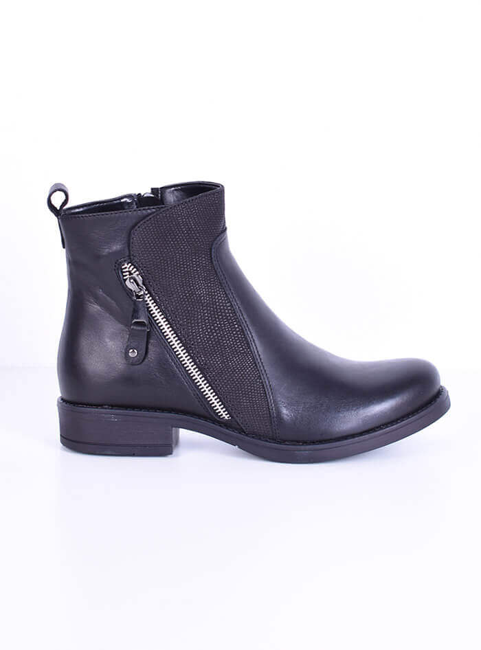 Δερμάτινο Χαμηλό Μποτάκι Μαύρο/Σαύρα