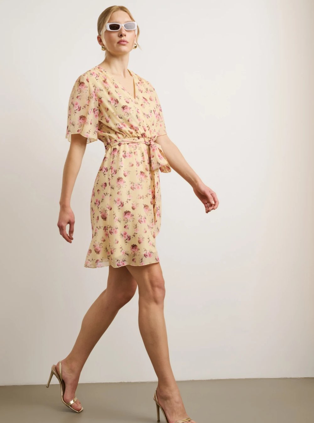 Μίνι φλοράλ φόρεμα με κρουαζέ ντεκολτέ και αέρινα μανίκια.