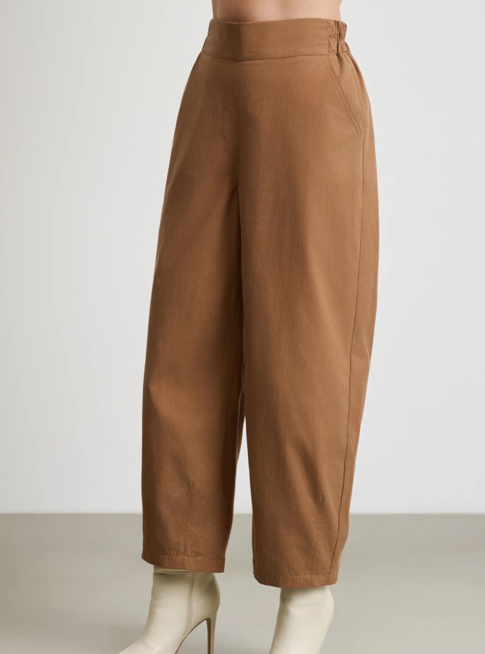 Γυναικείο παντελόνι ψηλόμεσο με λάστιχο στο πίσω μέρος και Barrel εφαρμογή, σε καφέ χρώμα DESIREE.