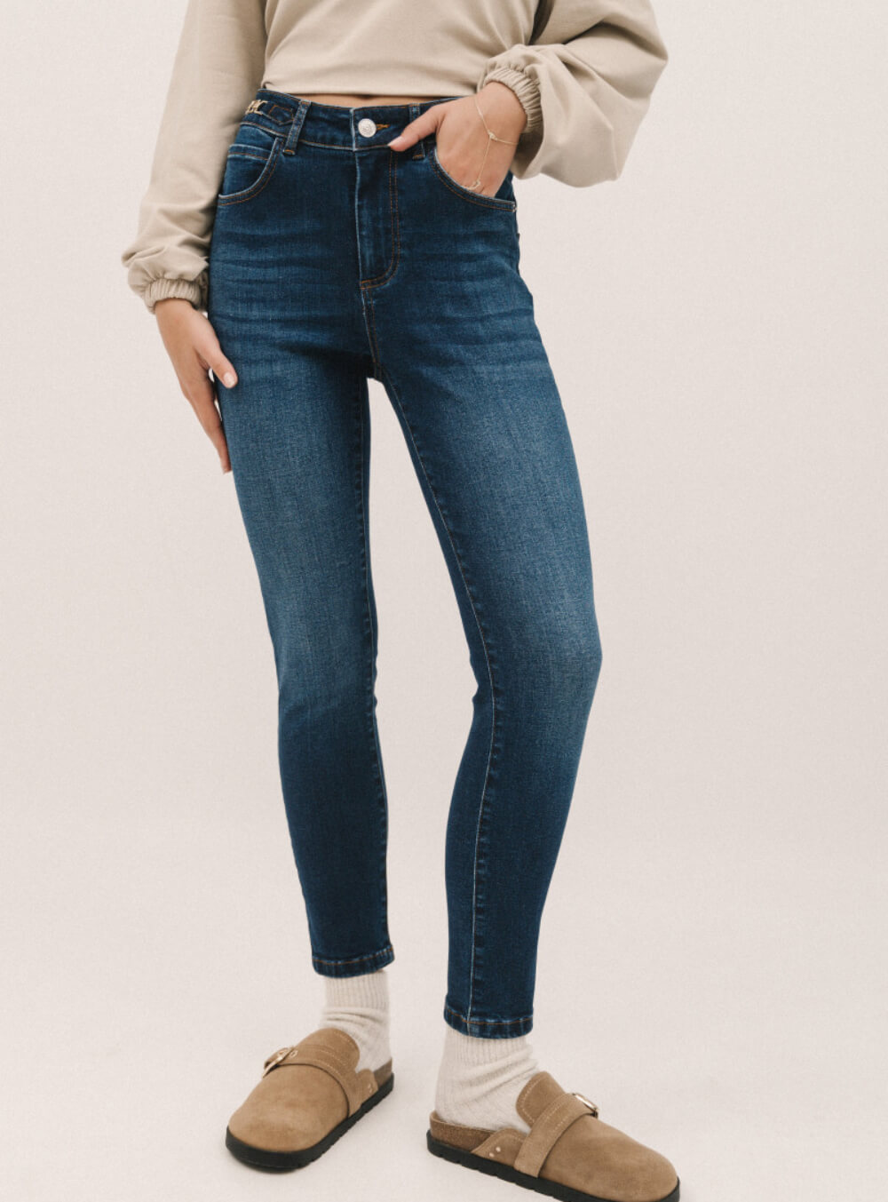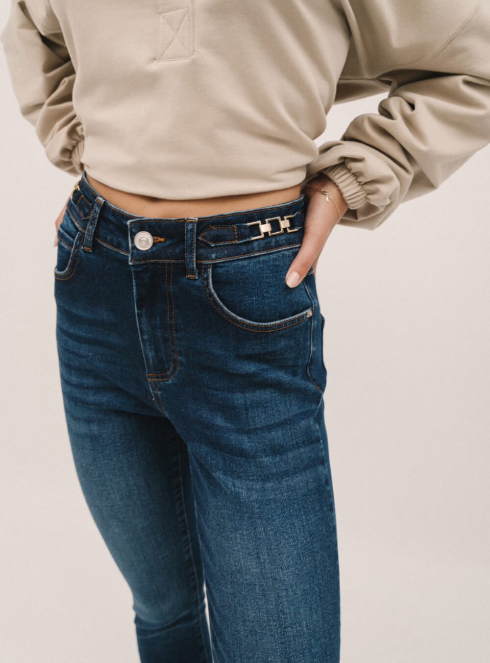 Ψηλόμεσο παντελόνι σε μπλε χρώμα με μεταλλικά διακοσμητικά στο πλάι και skinny εφαρμογη EDWARD JEANS ASTERE_BLUE