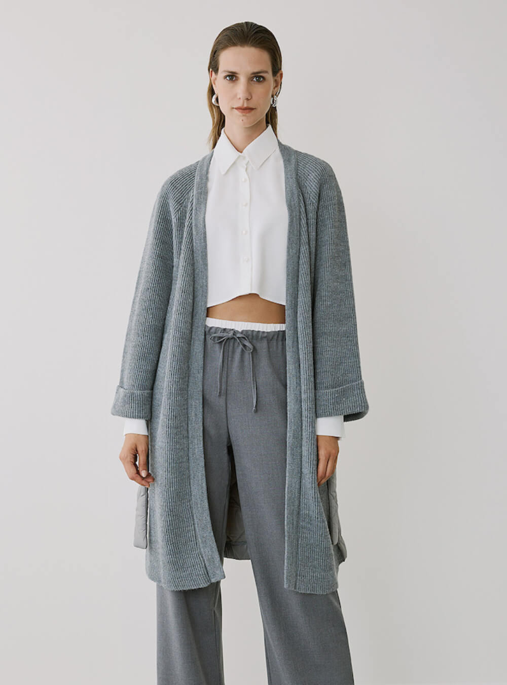 EIGHTY2 Γυναικεία Ζακέτα Με Ζώνη GREY - Image 3