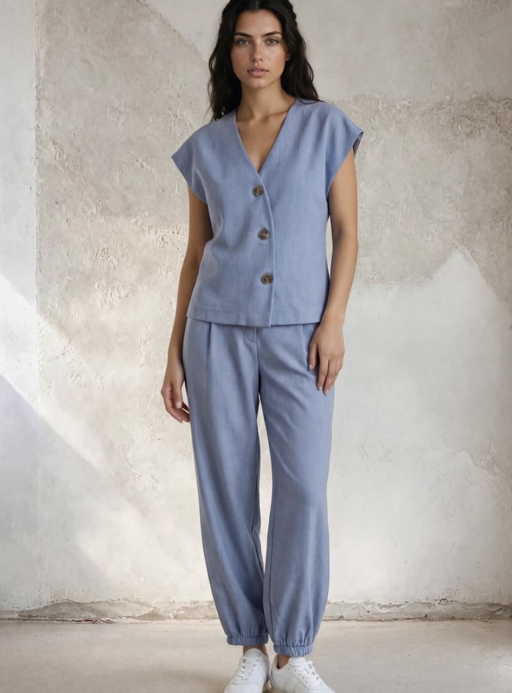 Γυναικεία αμάνικη μπλούζα γιλέκο κατασκευασμένη από ανάλαφρο ύφασμα σε υπέροχο jeans χρώμα ESCAPE.