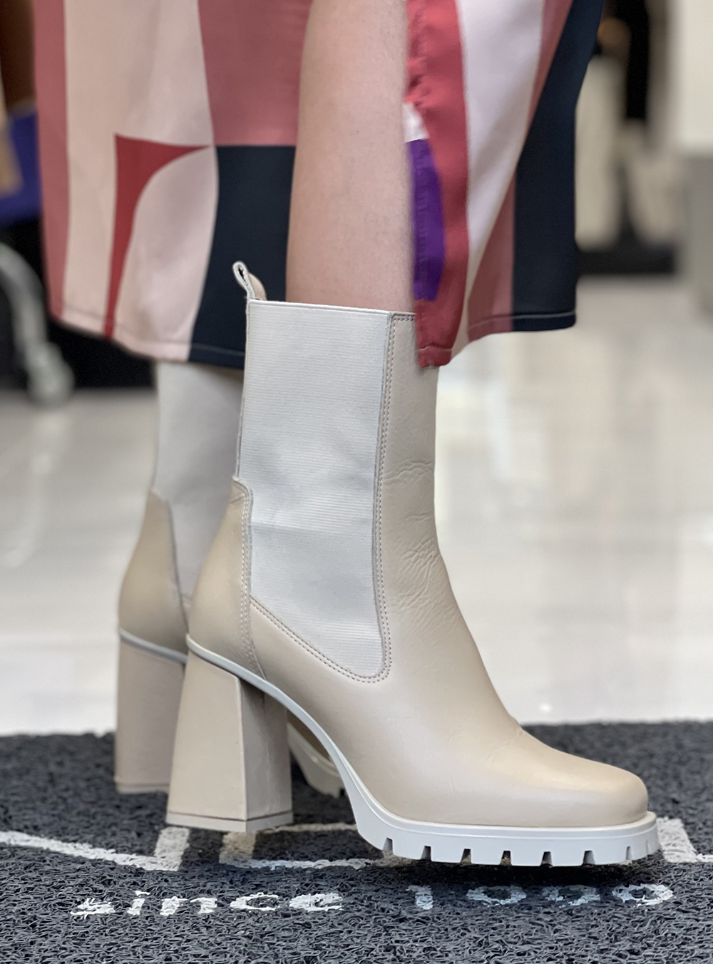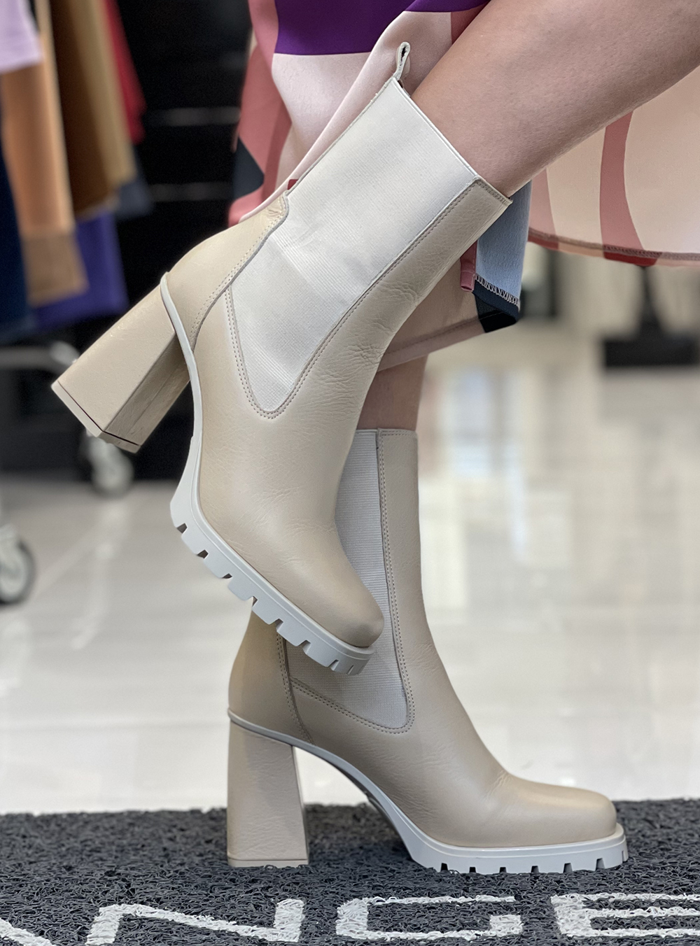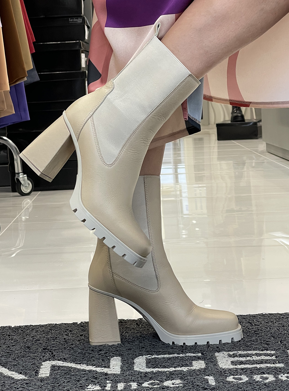 Γυναικεία δερμάτινα μποτάκια σε μπεζ χρώμα κατασκευασμένα από δέρμα υψηλής ποιότητας του οίκου υποδημάτων FARDOULIS SHOES.