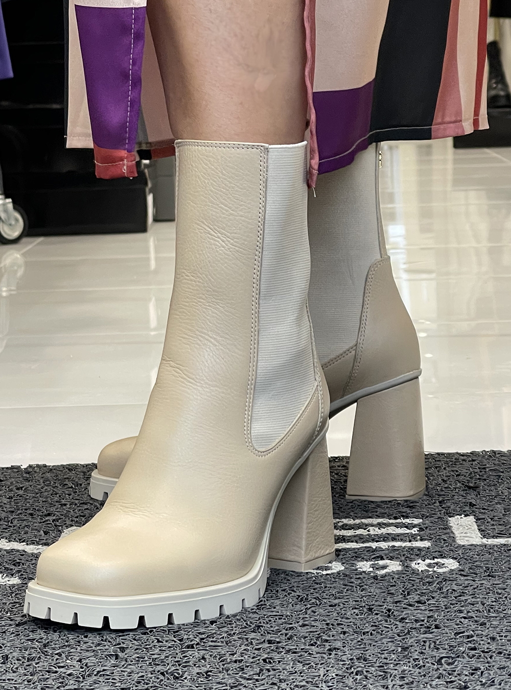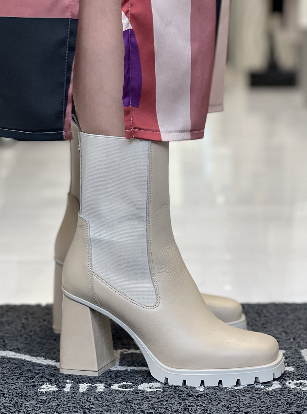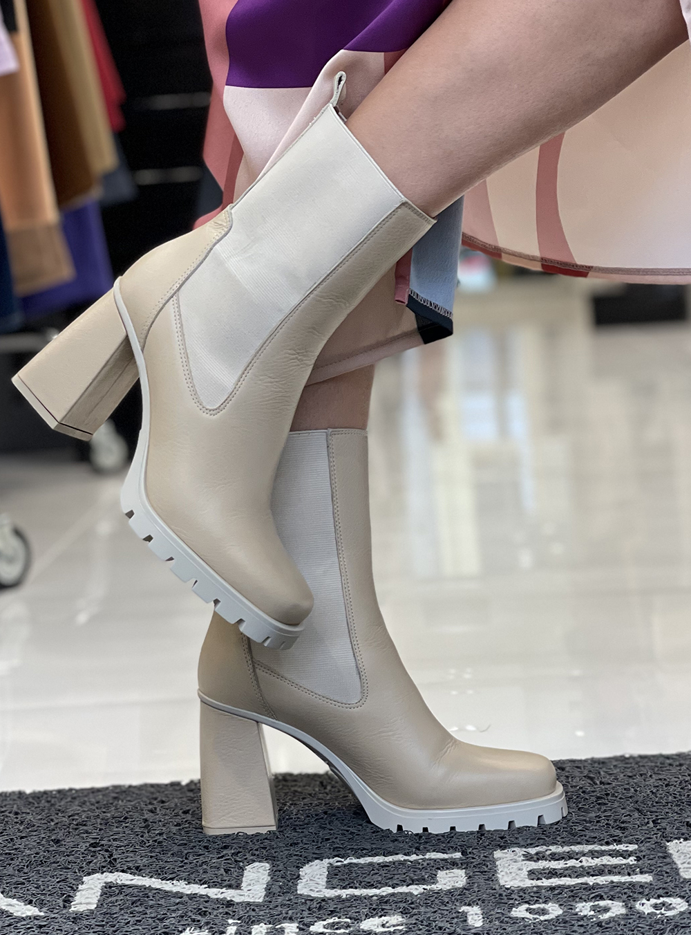Γυναικεία δερμάτινα μποτάκια σε μπεζ χρώμα κατασκευασμένα από δέρμα υψηλής ποιότητας του οίκου υποδημάτων FARDOULIS SHOES.