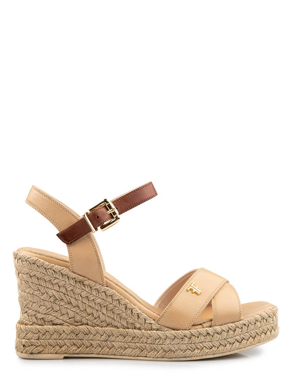 Μπεζ  δερμάτινες πλατφόρμες με καφέ λουράκι και ύψος  9 εκ. FARDOULIS SHOES 631-02.