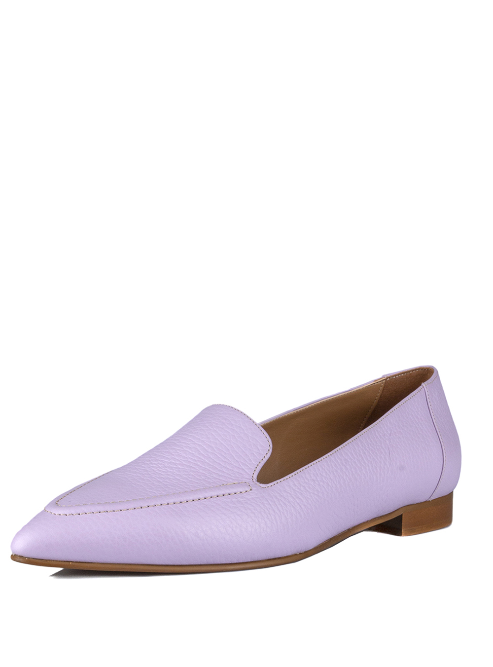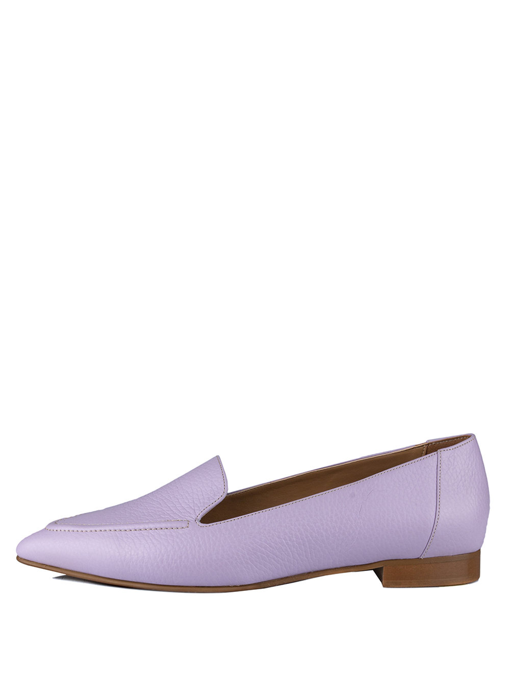 Δερμάτινα γυναικεία loafers/Μοκασίνια με γκοφρέ δέρμα σε λιλά χρώμα.