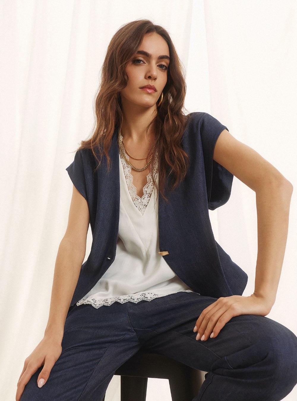 Γυναικείο γιλέκο – τοπ που κλείνει με ένα χρυσό κουμπί FIGARO FASHION.
