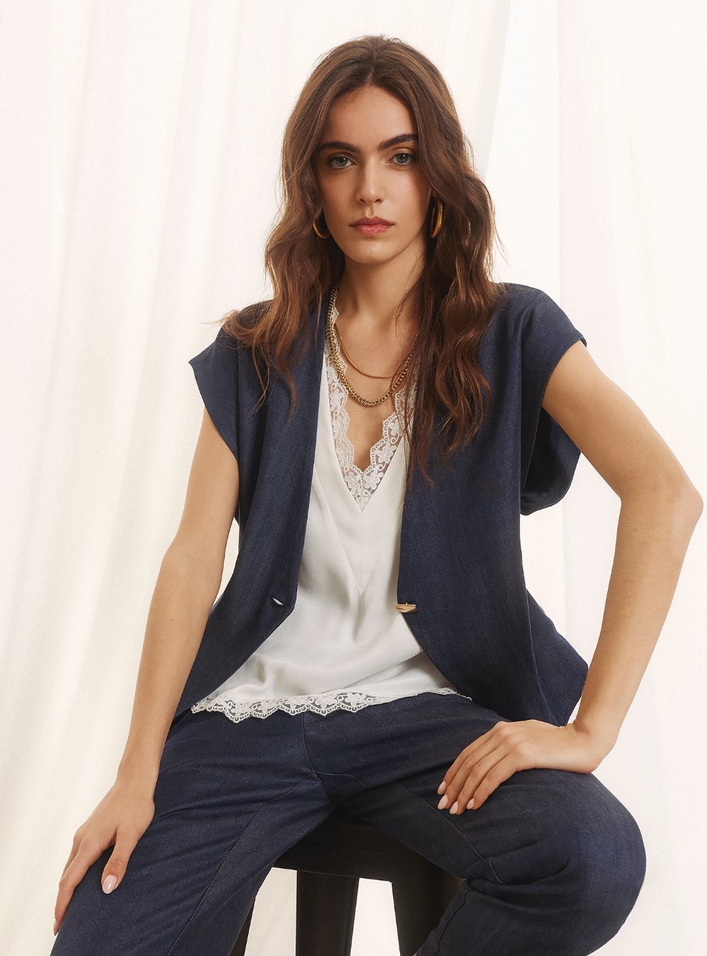 Γυναικείο γιλέκο - τοπ που κλείνει με ένα χρυσό κουμπί FIGARO FASHION.