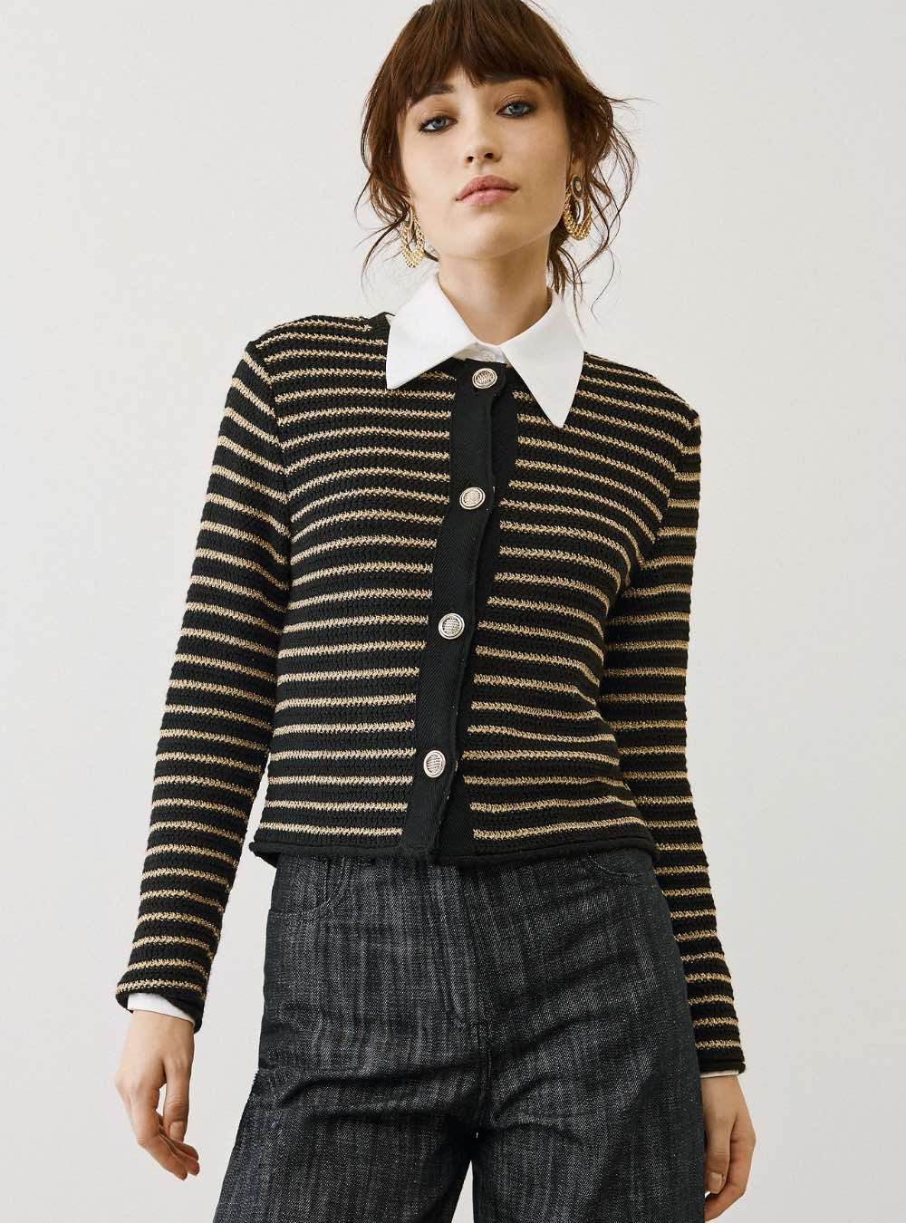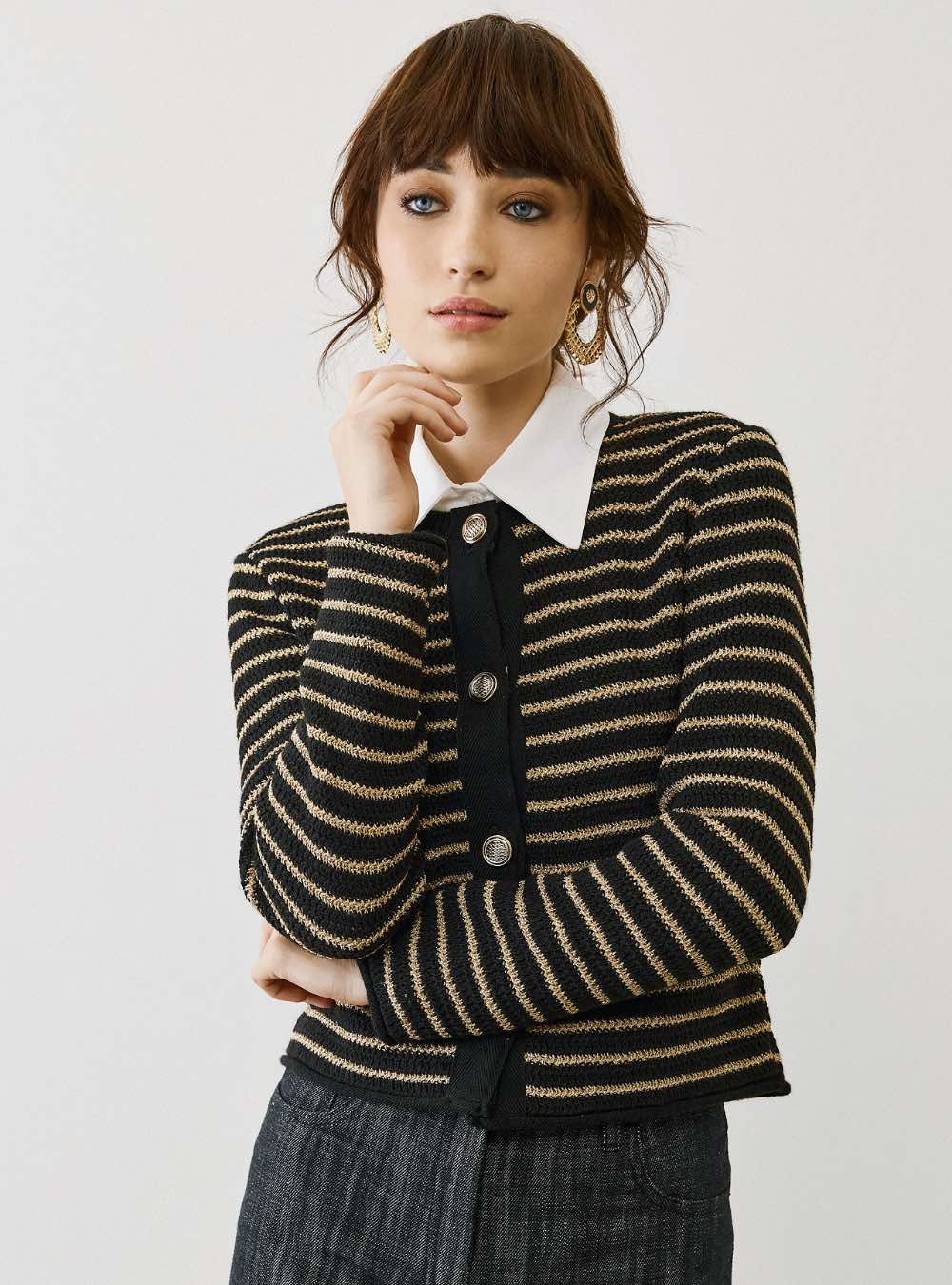 Γυναικεία ζακέτα με χρυσά κουμπιά , ριγέ μαύρο-χρυσό FIGARO FASHION