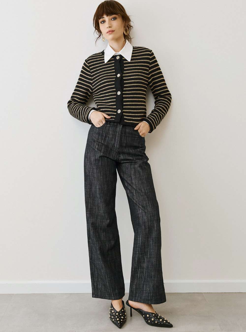 FIGARO Πλεκτή Ζακέτα BLACK GOLD