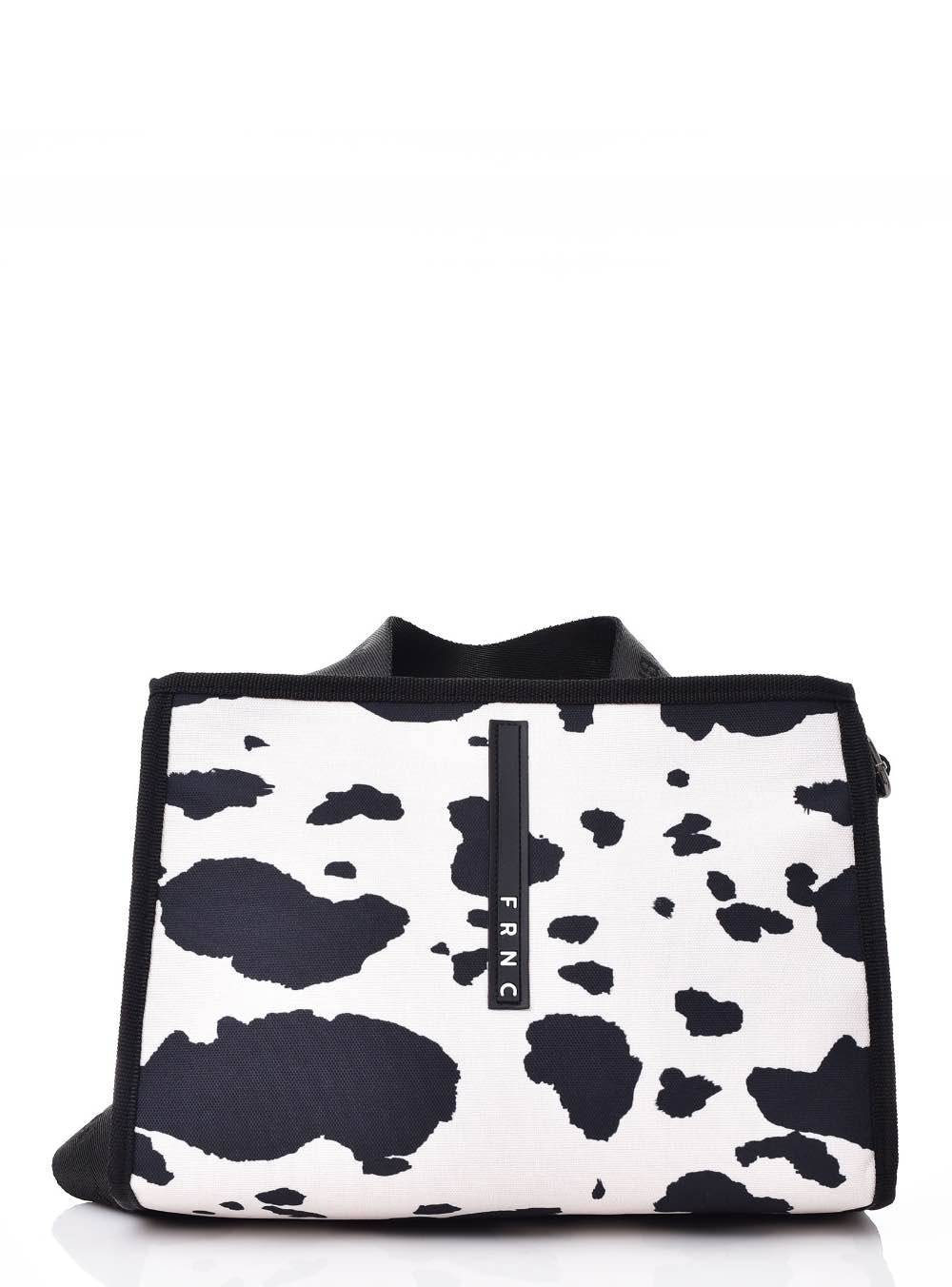 Γυναικεία τσάντα χιαστί κατασκευασμένη από αδιάβροχο ύφασμα  FRNC 5210 σε μαύρο και λευκό.