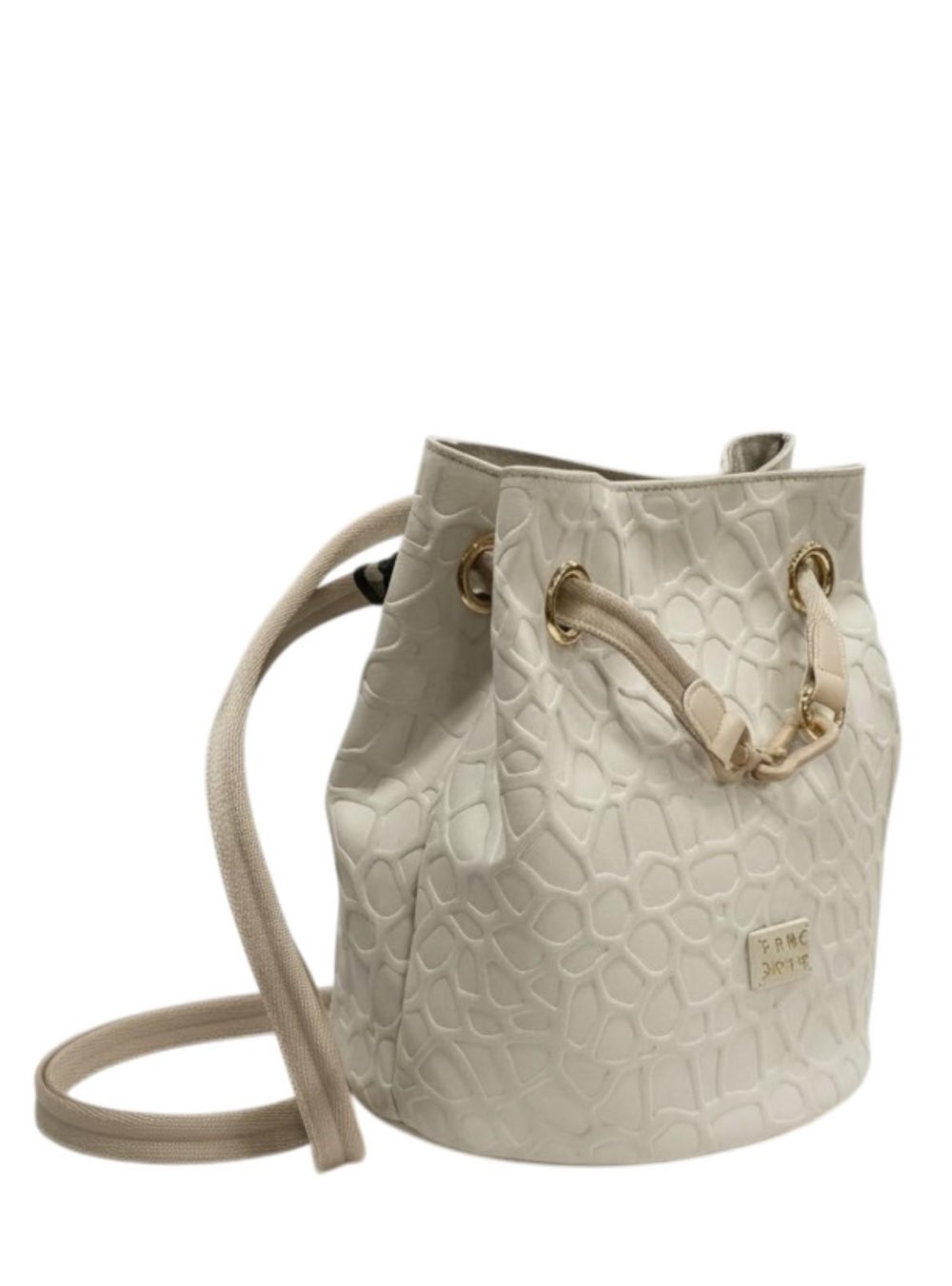 Γυναικεία τσάντα ώμου-πουγκί χιαστί με κροκό σχέδιο κατασκευασμένη από οικολογικό δέρμα και ύφασμα FRNC 6193 PRL.