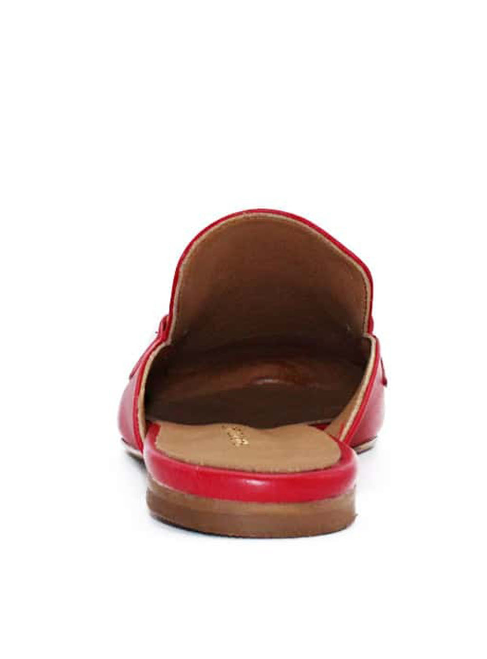 Γυναικεία κόκκινα mules με επίχρυση αγκράφα, κατασκευασμένα από γνήσιο δέρμα εσωτερικά και εξωτερικά .