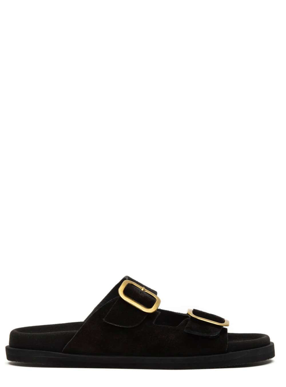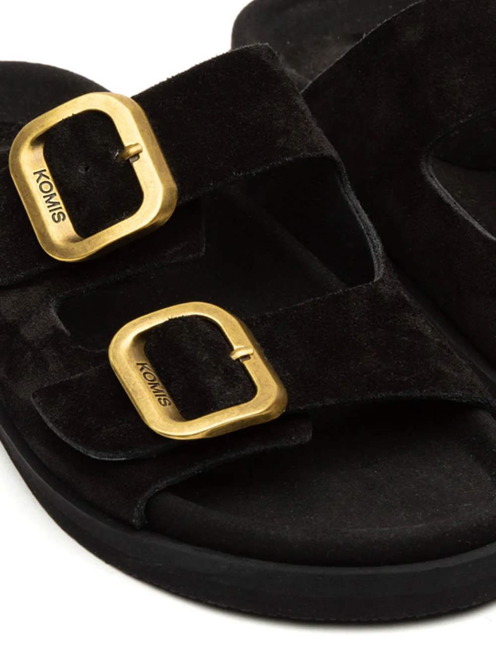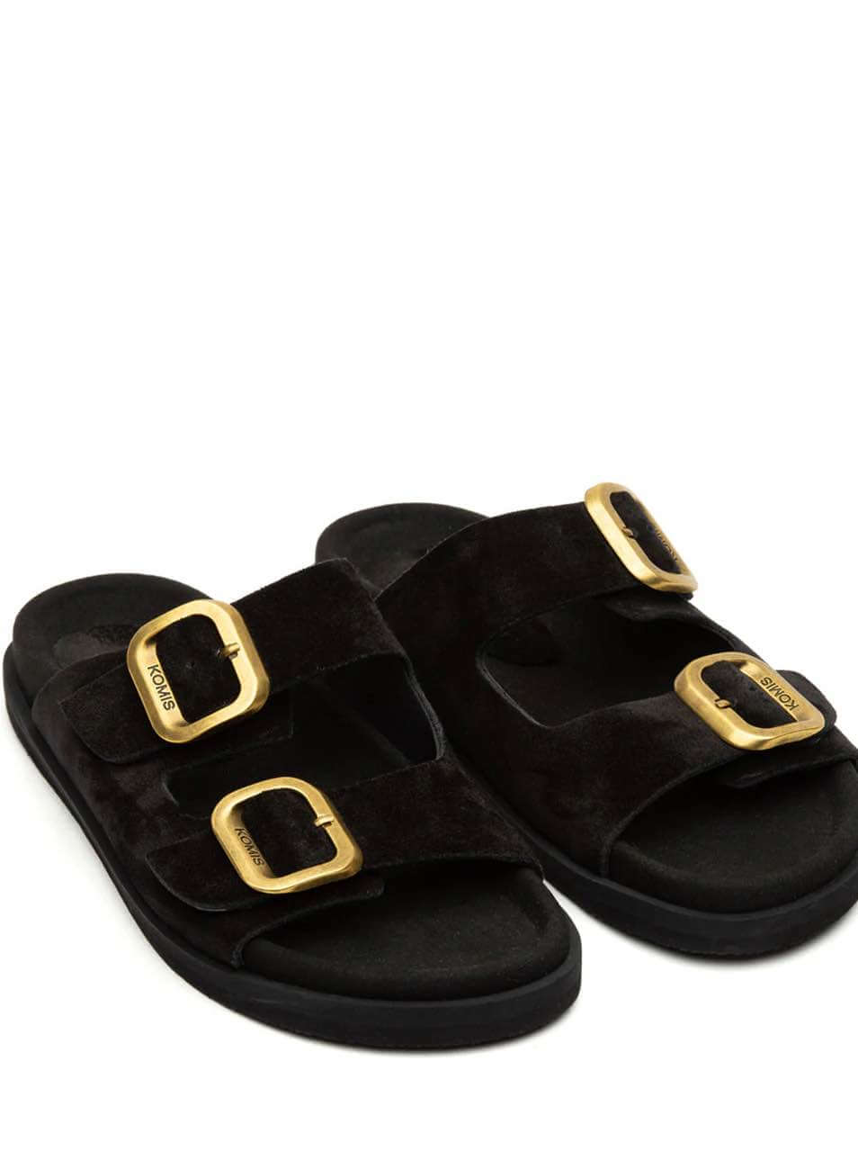 Γυναικεία δερμάτινα ανατομικά φλατ σανδάλια Ελληνικής κατασκευής KOMIS & KOMIS B3 BLACK
