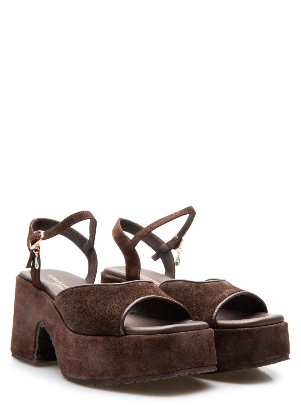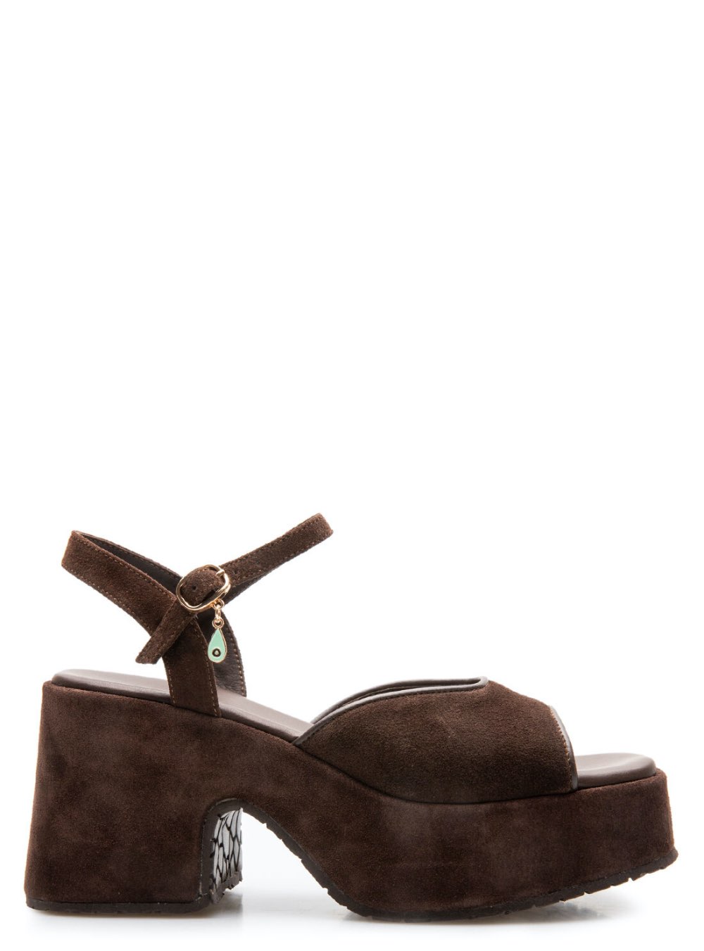 Γυναικεία πέδιλα με τακούνι και φιάπα κατασκευασμένα από υψηλής ποιότητας δέρμα suede,με μαλακό πάτο και αντιολισθητική σόλα.