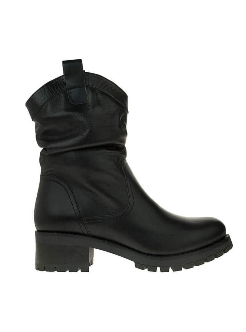 Γυναικείο μποτάκι δέρμα σε χρώμα μαύρο.