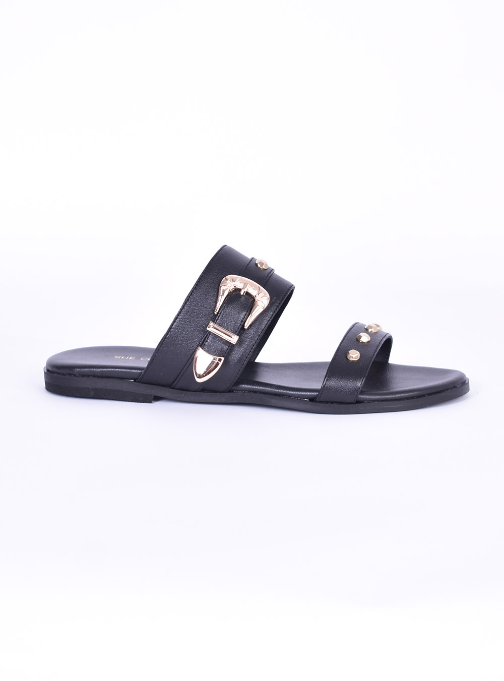 Αρχική » Shop » Μαύρα Δερμάτινα Σανδάλια Με Χρυσές Λεπτομέρειες