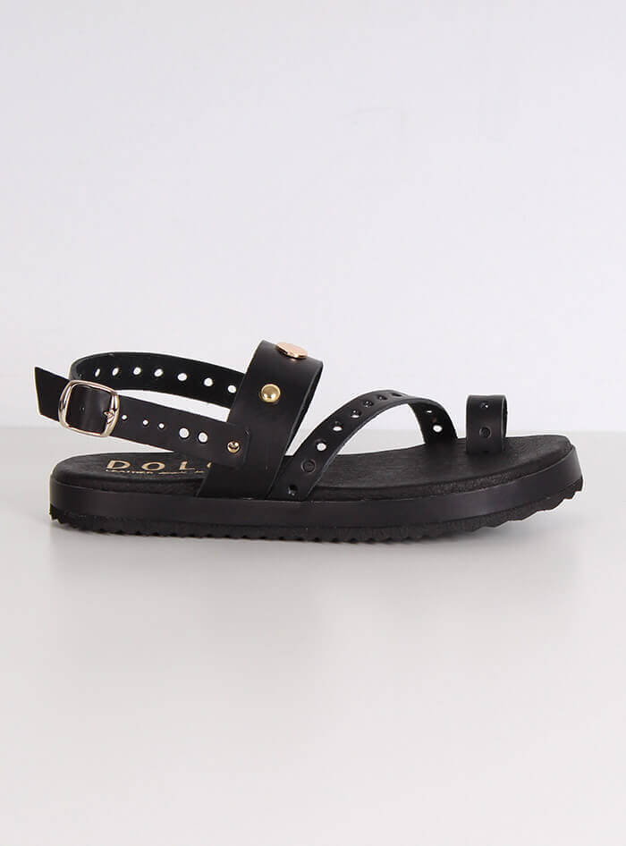 Γυναικεία δερμάτινα σανδάλια Dolce σε μαύρο χρώμα με χρυσές λεπτομέρειες.