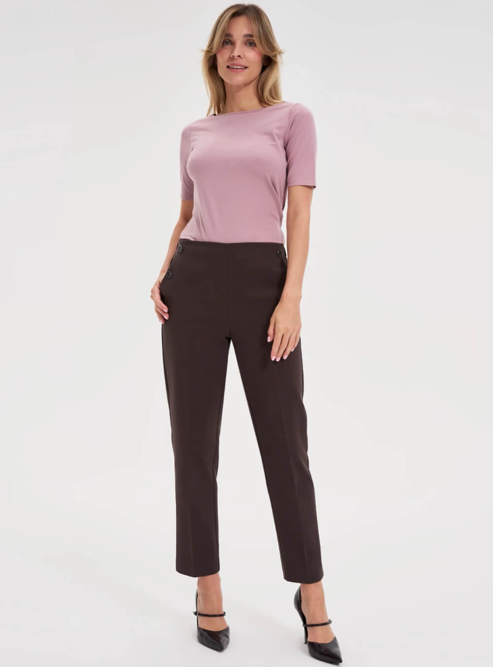 Γυναικείο παντελόνι με πλαϊνά κουμπιά και και λάστιχο στη μέση MOODO.