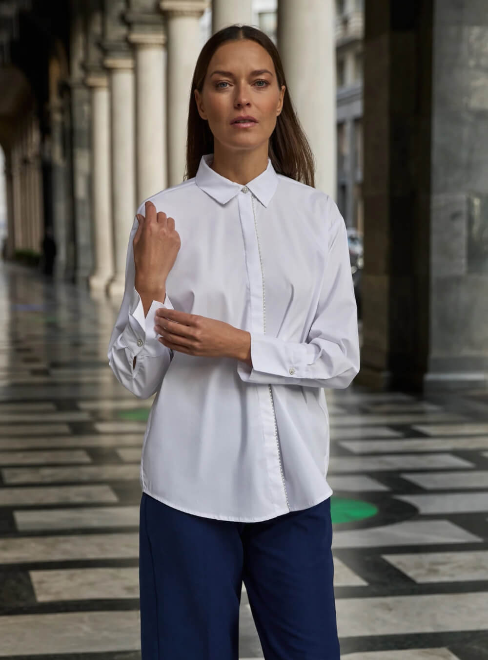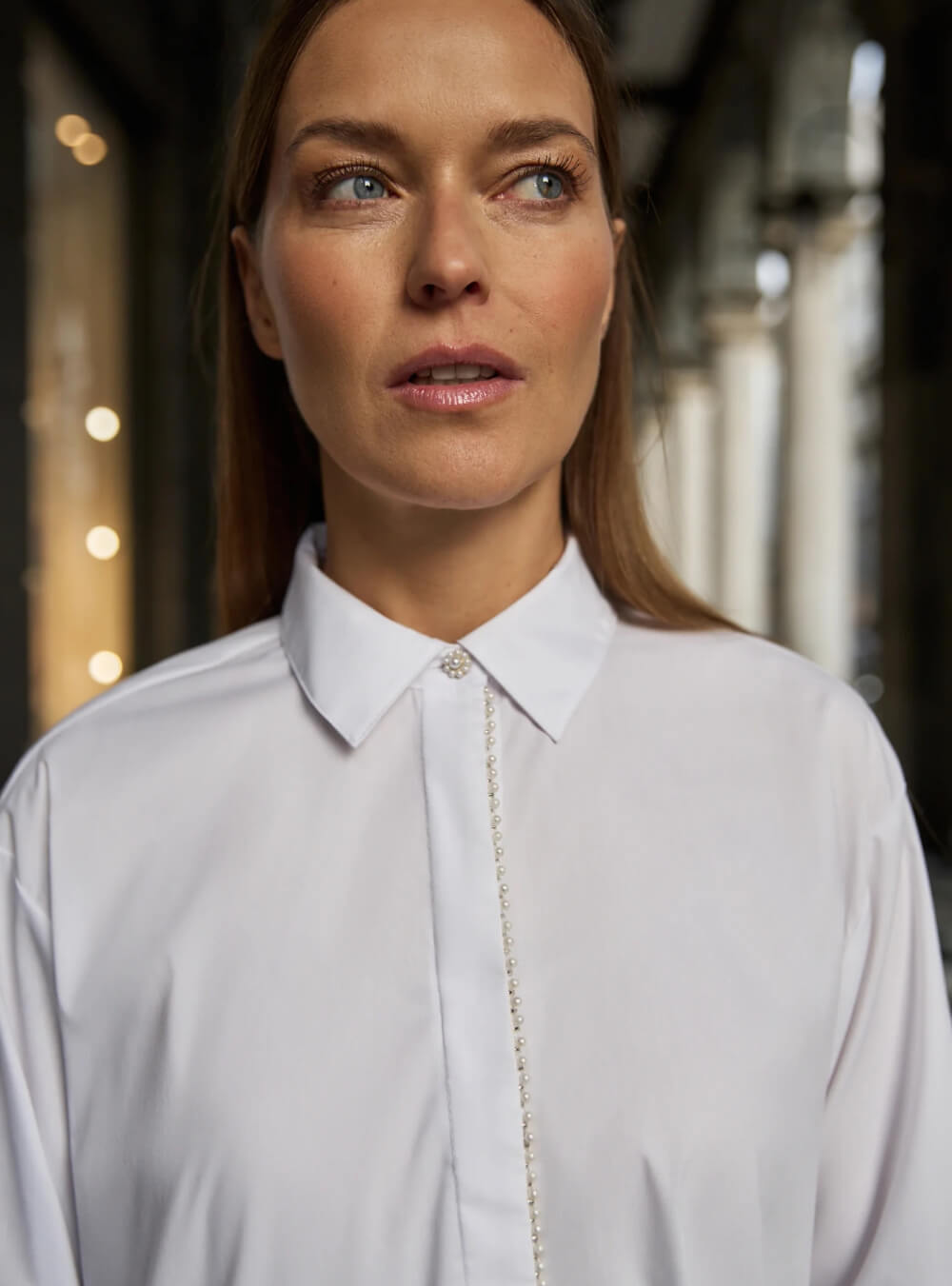Γυναικείο πουκάμισο με πέρλες WHITE MOODO