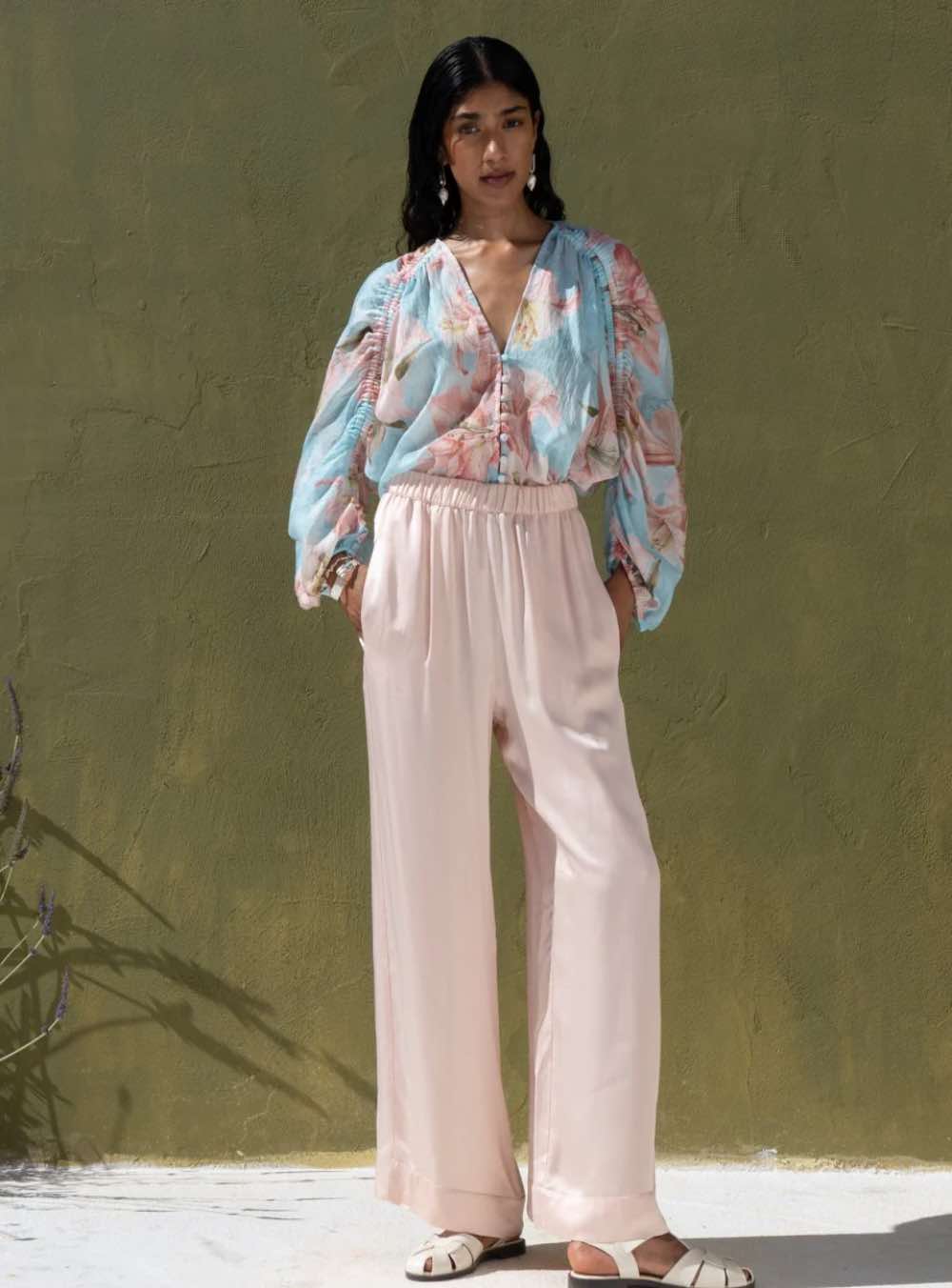 NEMA RESORTWEAR ΑΕΡΙΝΗ ΠΑΝΤΕΛΟΝΑ ΜΕ ΛΑΣΤΙΧΟ ΚΑΙ ΤΣΕΠΕΣ ΣΤΟ ΧΡΩΜΑ ΤΗΣ ΠΟΥΔΡΑΣ ||ΓΥΝΑΙΚΕΙΑ ΡΟΥΧΑ ΠΑΠΟΥΤΣΙΑ ΚΑΙ ΑΞΕΣΟΥΑΡ