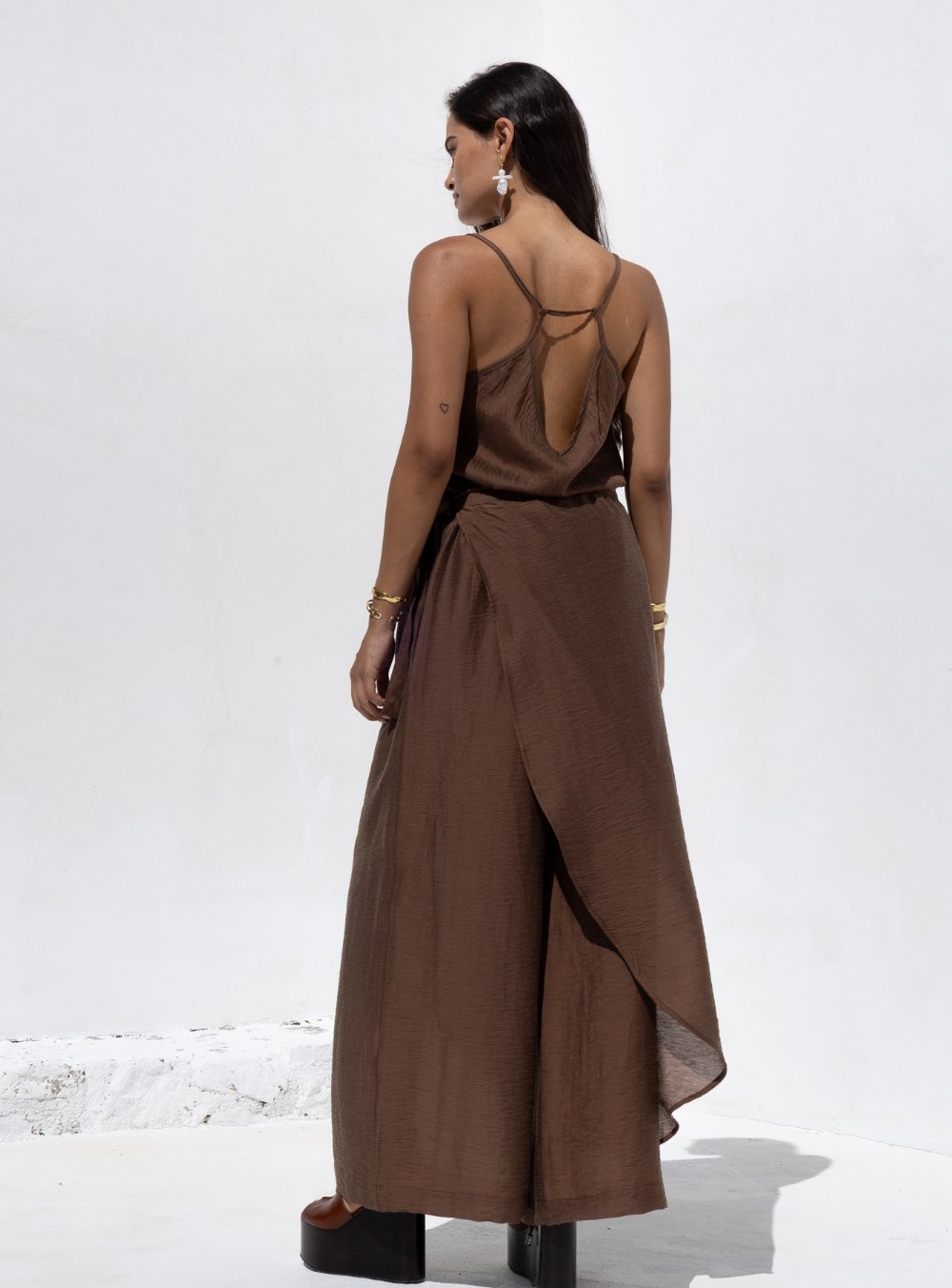 Γυναικείο παντελόνι κατασκευασμένο από ανάλαφρο ύφασμα με ύφασμα που δένει στο πλάι και φαίνεται σαν φούστα wrap NEMA RESORT WEAR CIELO PANTS