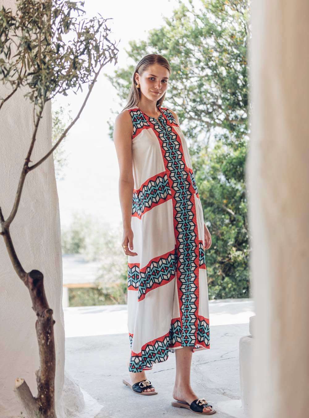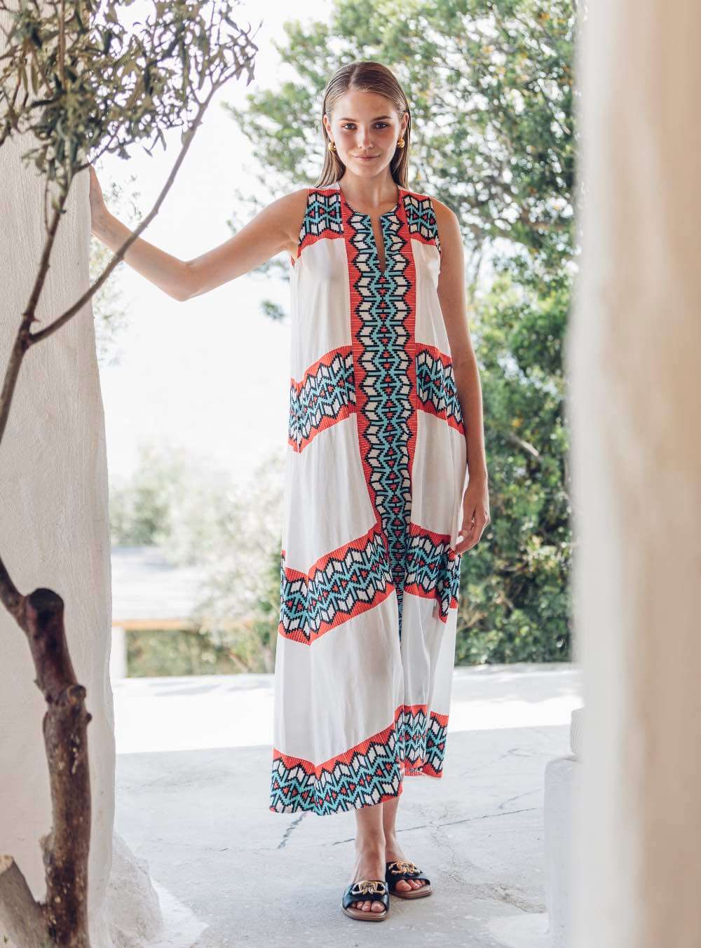 Γυναικείο φόρεμα μάξι με υπέροχο συνδυασμό χρωμάτων κατασκευασμένο από ανάλαφρο βαμβακερό ύφασμα NEMA RESORTWEAR PERLA DRESS.