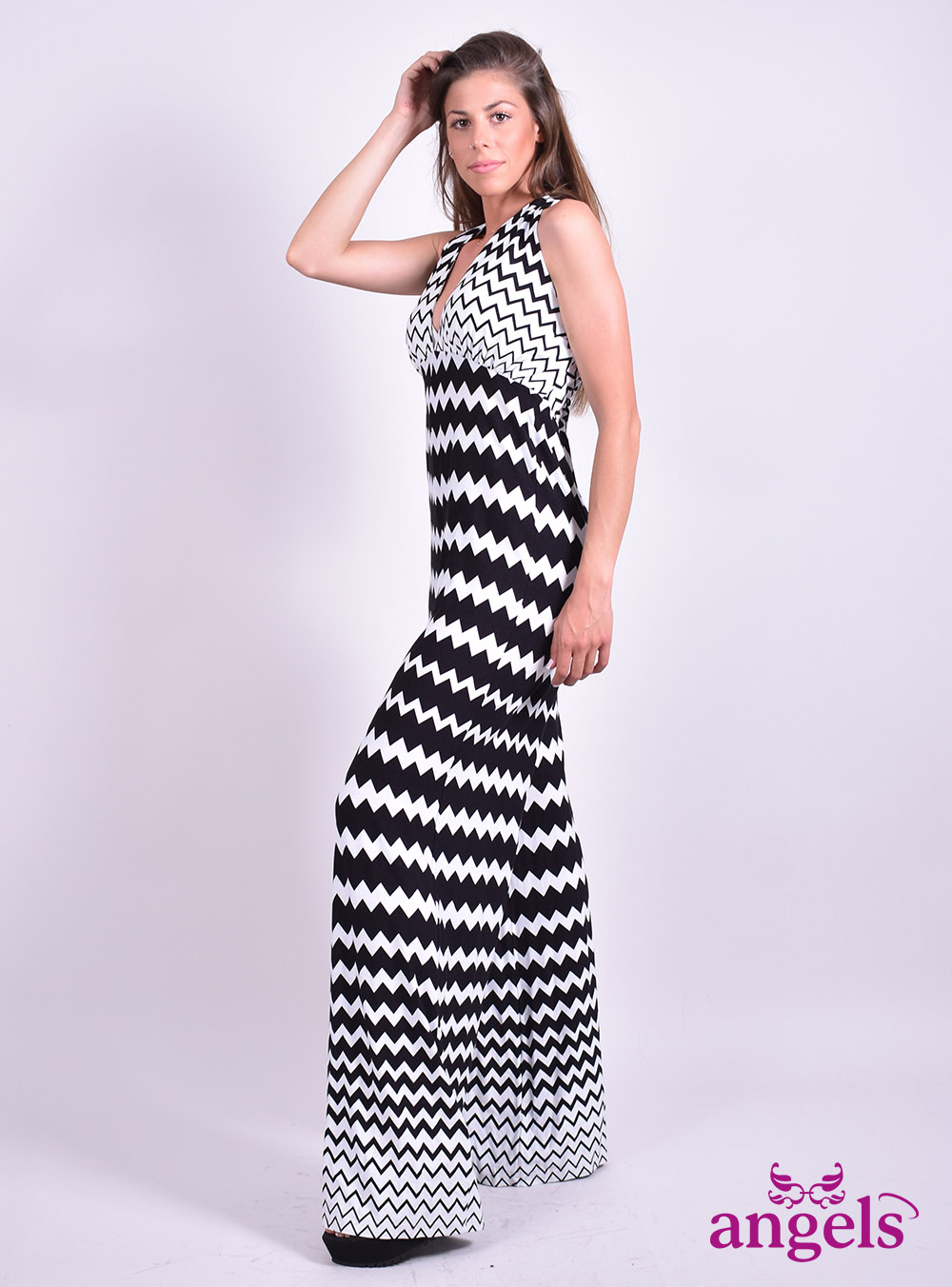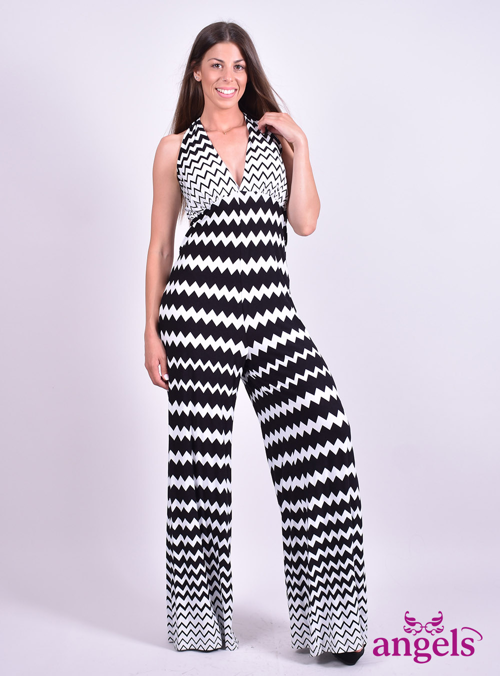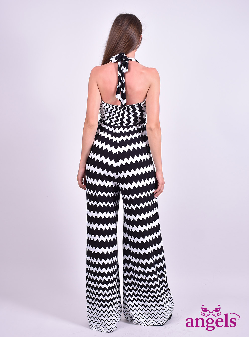 Γυναικεία ολόσωμη φόρμα με σχέδια τύπου Missoni που δένει στο λαιμό.