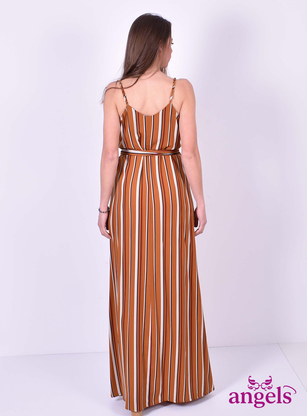 Μάξι φόρεμα ριγέ κρουαζέ||ISO FASHION