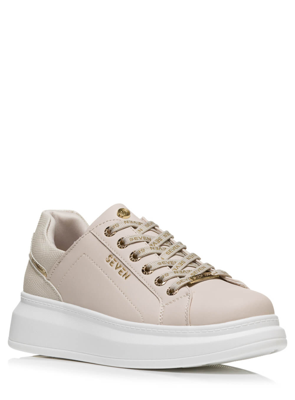 Γυναικεία sneakers σε υπέροχο μπεζ χρώμα με χρυσές λεπτομέρειες και logo seven στα κορδόνια.
