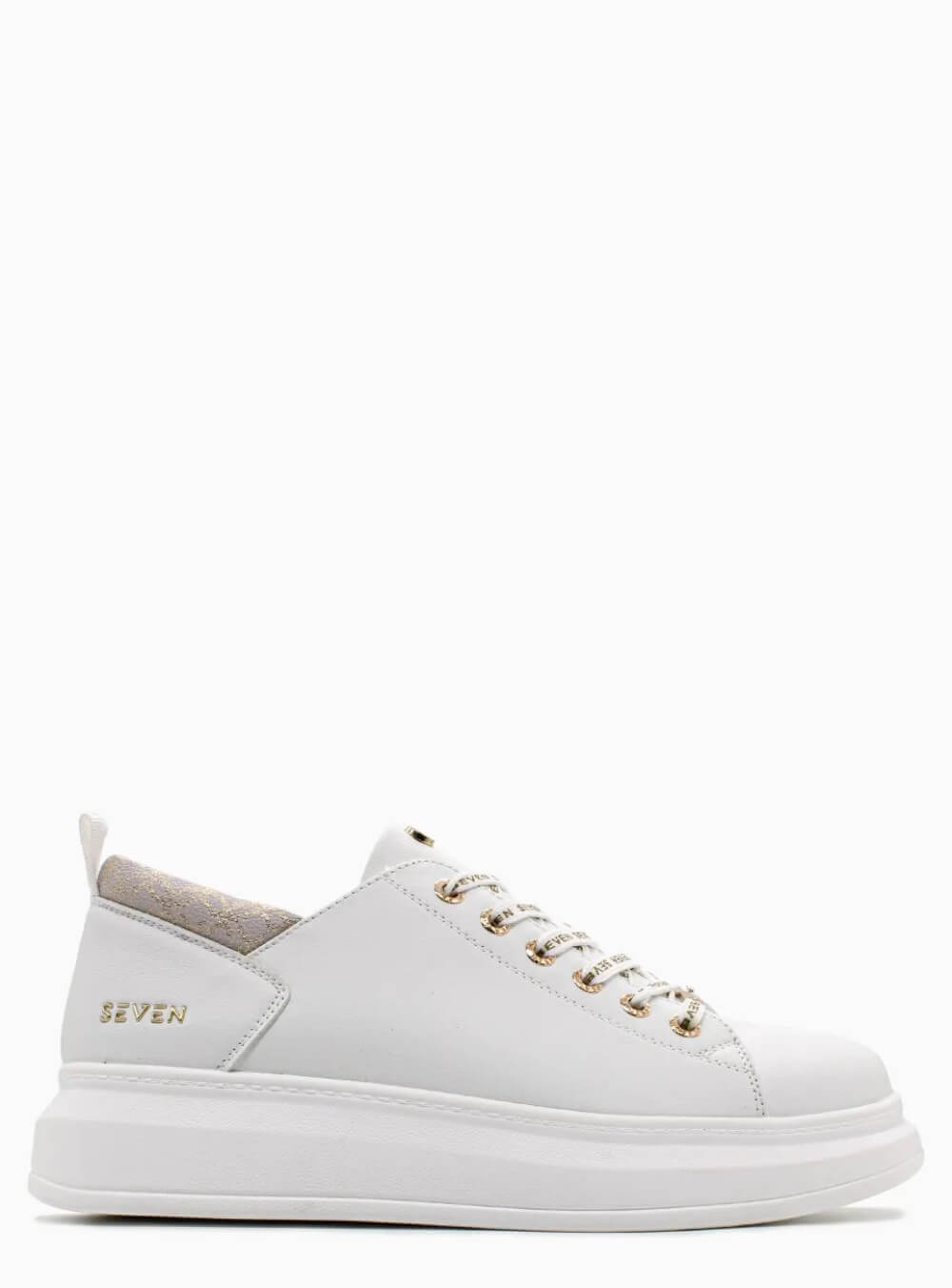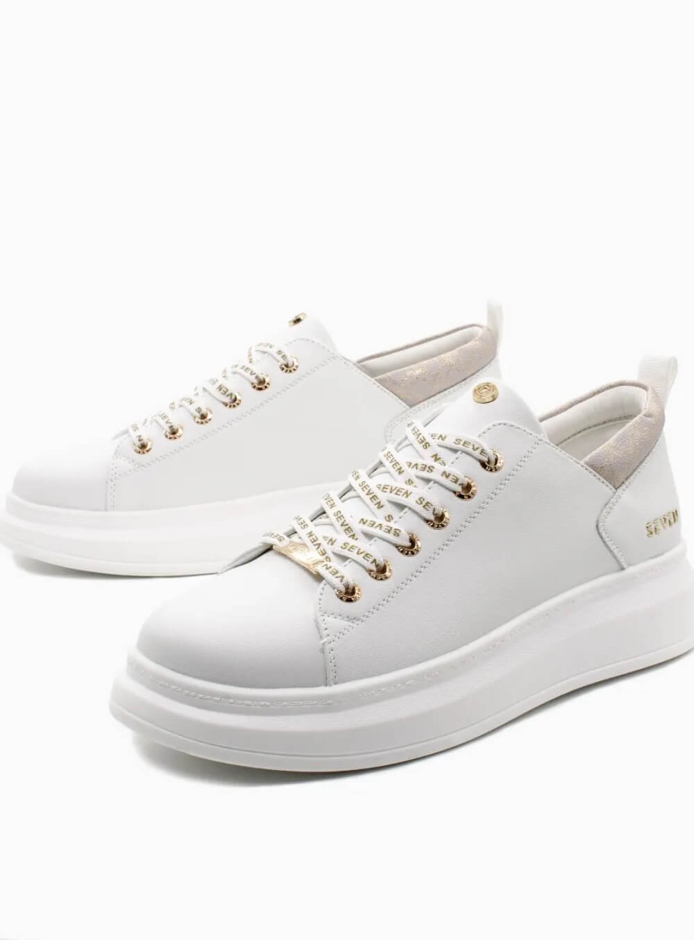 Γυναικεία sneakers με χρυσές λεπτομέρειες και logo seven στα κορδόνια.