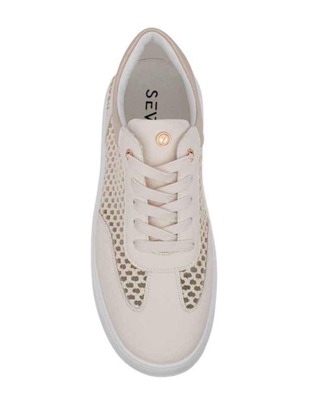 Γυναικεία sneakers με άνετη χοντρή σόλα σε μπεζ χρώμα με χρυσές λεπτομέρειες SEVEN.
