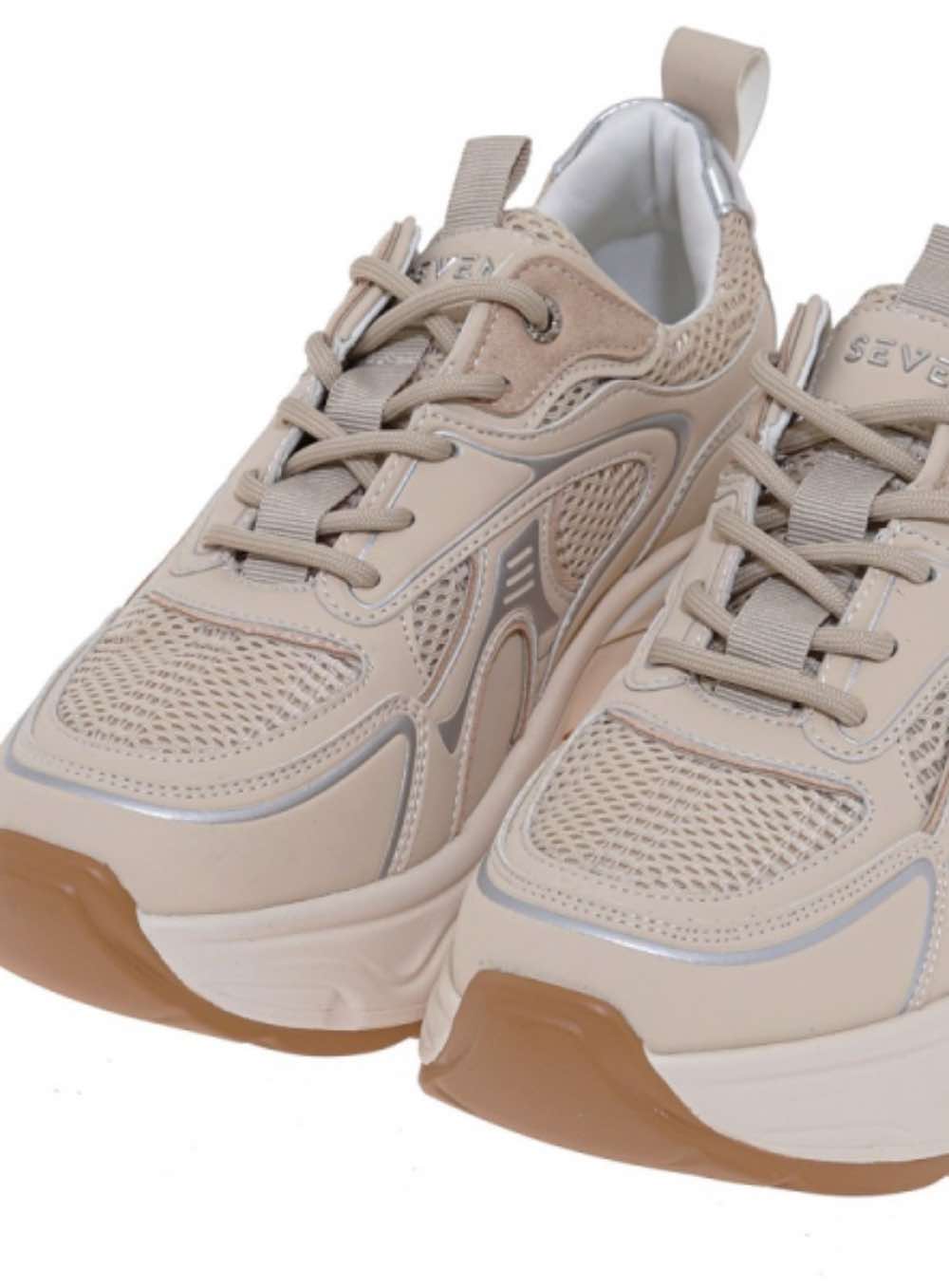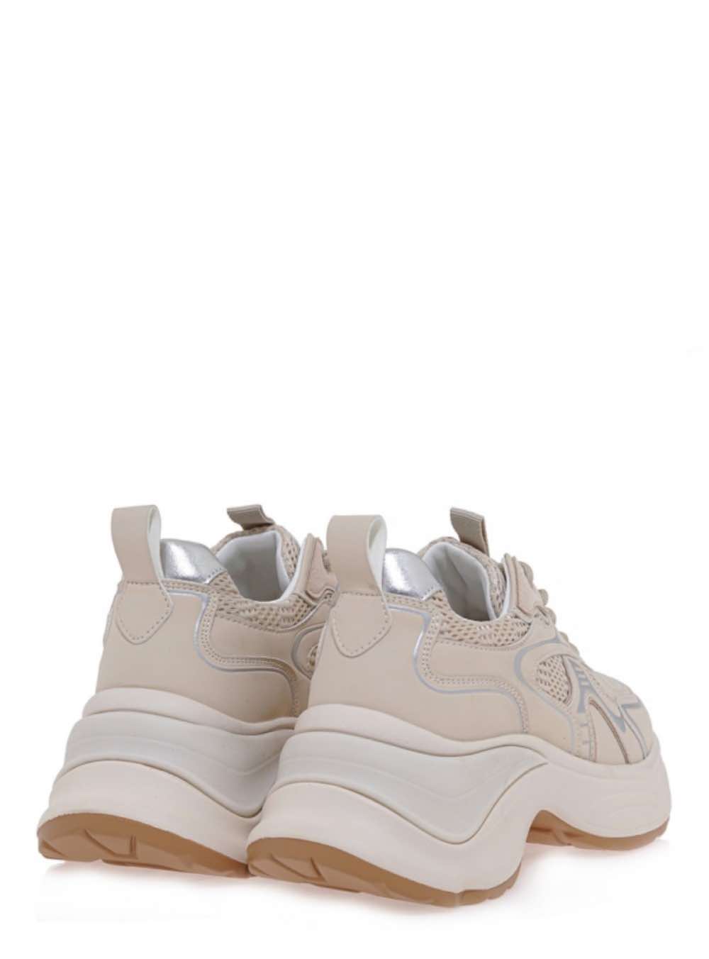 Γυναικεία sneakers με άνετη χοντρή (Chunky) σόλα σε μπεζ χρώμα με ασημί SEVEN.