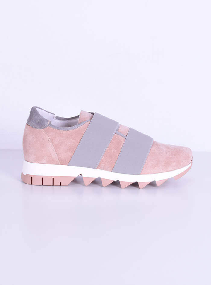 Υψηλής ποιότητας γυναικεία sneakers με άνετο και ξεκούραστο πάτο  με συνδυασμό χρωμάτων πούδρα-γκρι.Κατασκευασμένο από δέρμα-καστόρι ανώτερης ποιότητας  εξωτερικά.