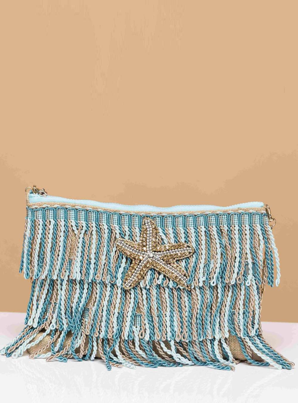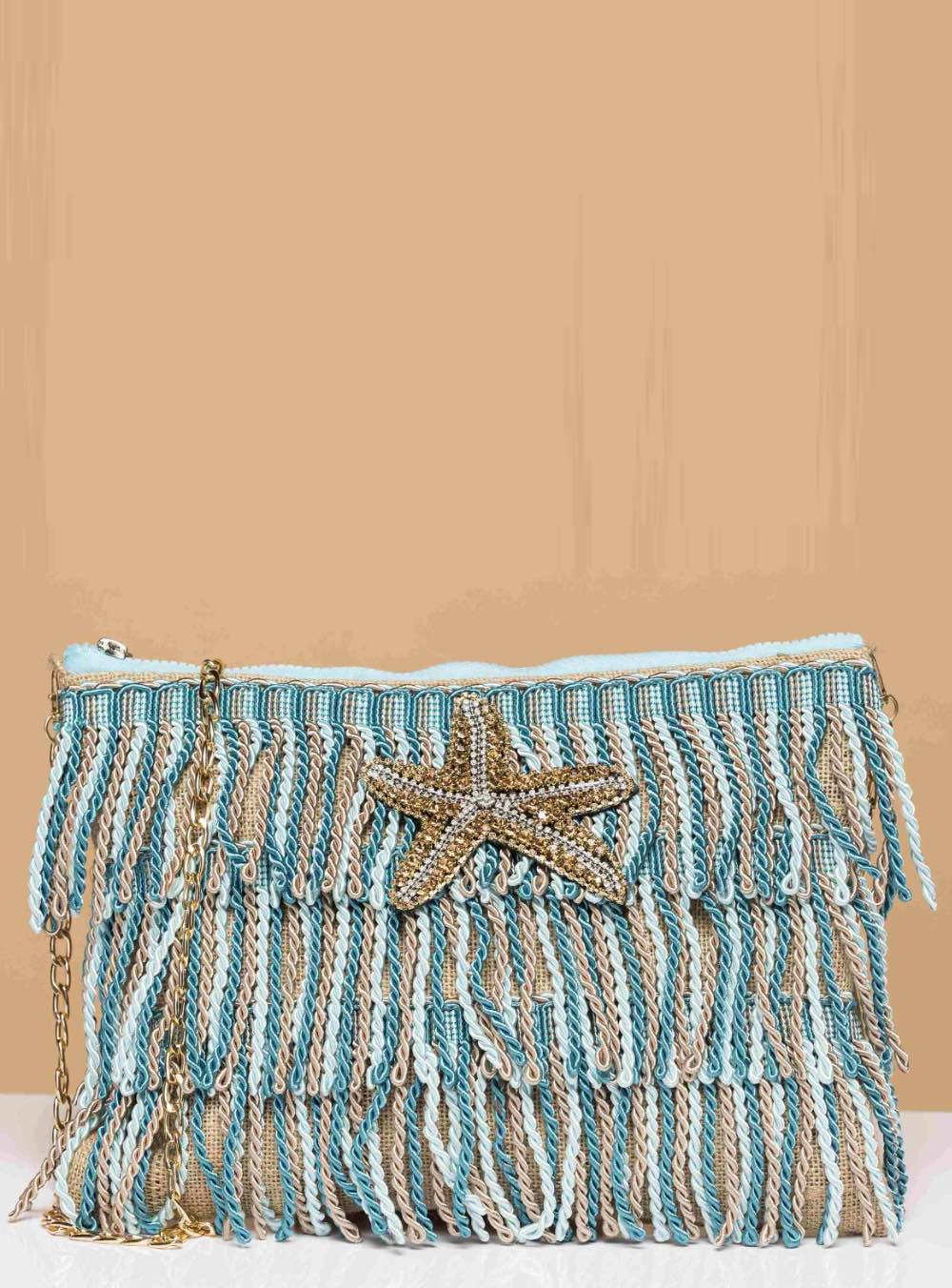 Χειροποίητη μαλακή τσάντα SORENA ASTERIAS BLUE CLUTCH