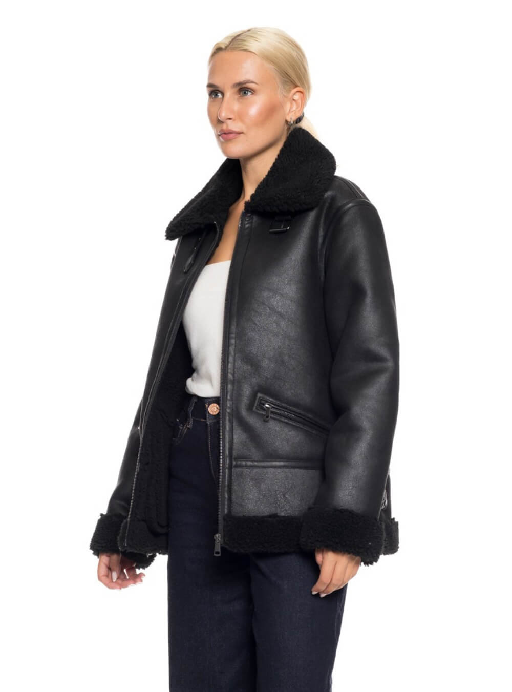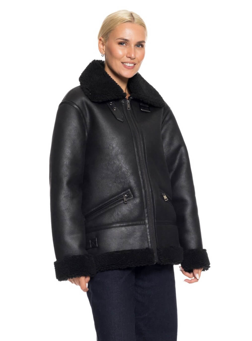 Κοντό μουτόν από δερματίνη με κλείσιμο φερμουάρ.