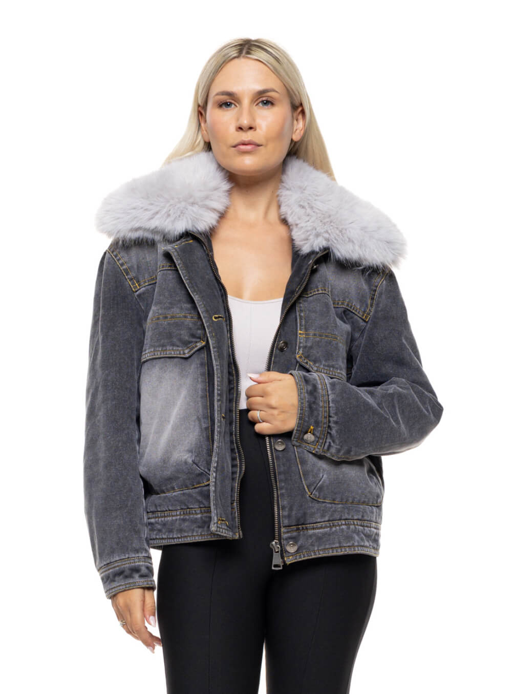 Τζιν μπουφάν με γούνα γυναικείο||Γυναικεία ρούχα||Γυναικεία τζιν μπουφάν||