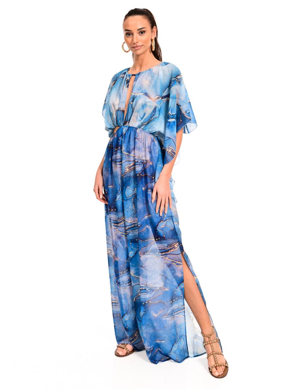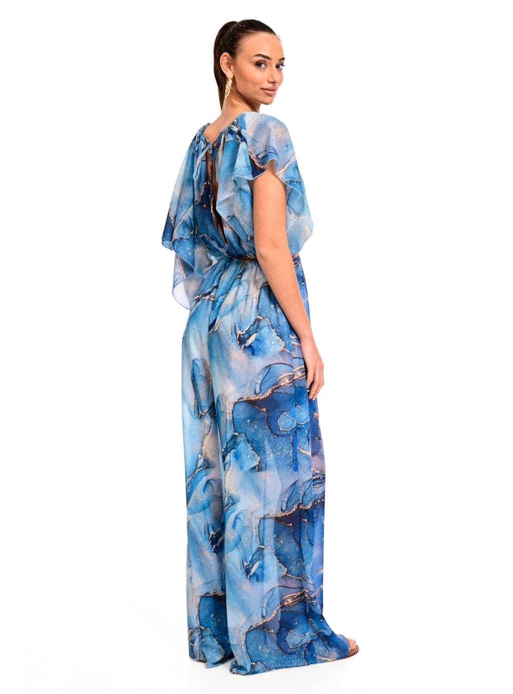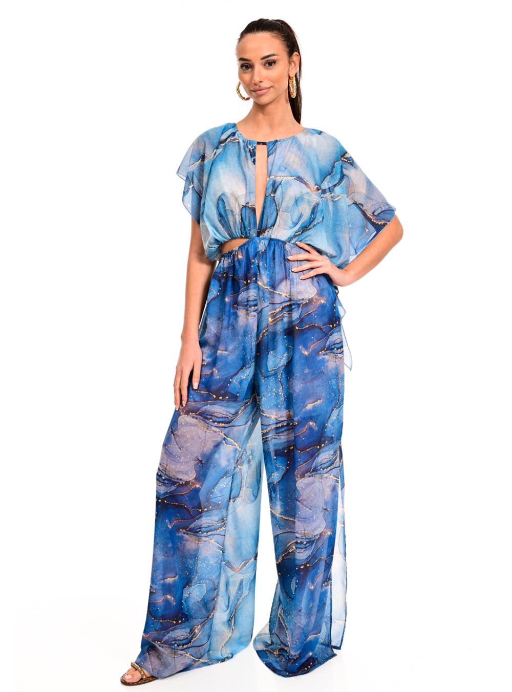 Γυναικεία ολόσωμη φόρμα μουσελίνα , με ρυθμιζόμενη λαιμόκοψη χαμόγελο , ελαστική μέση και άνοιγμα στο πλάι. WE COSS FASHION